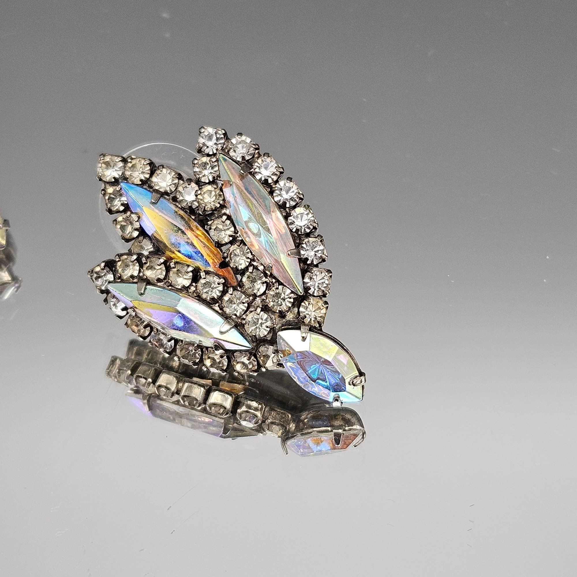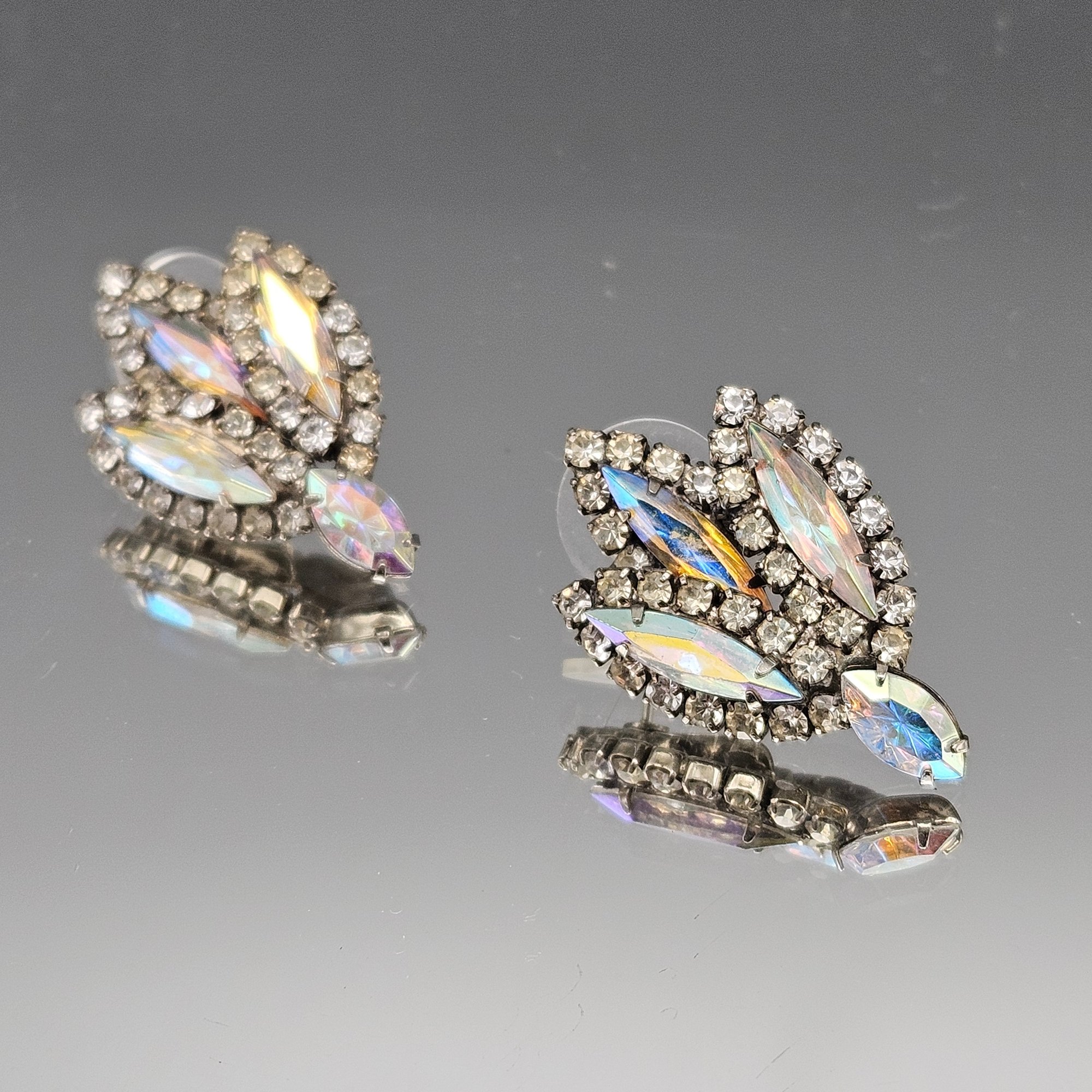 Vintage Iridescent Rhinestone Cluster Earrings