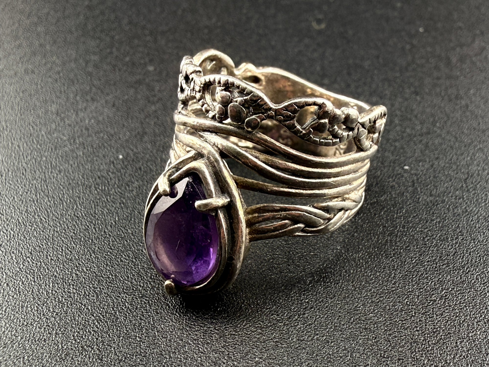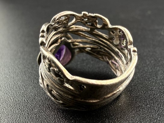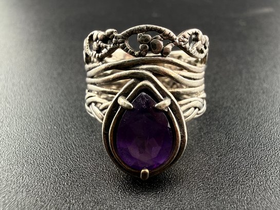 Vintage Israeli 925 Sterling Silver Amethyst Statement Ring – Size 7