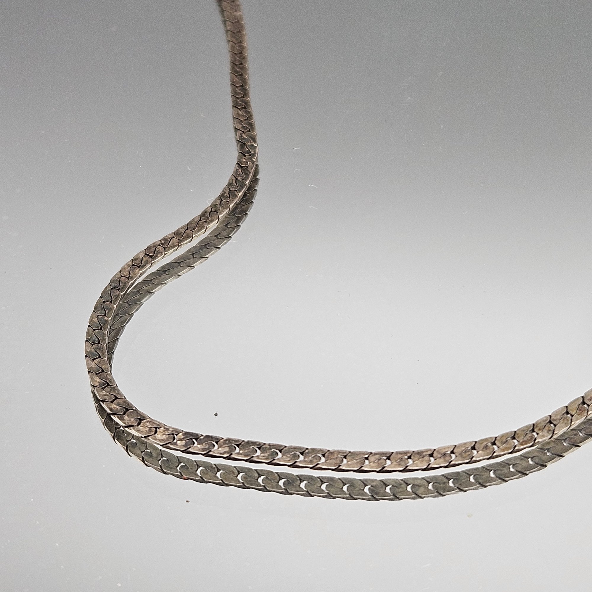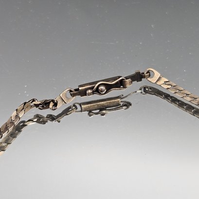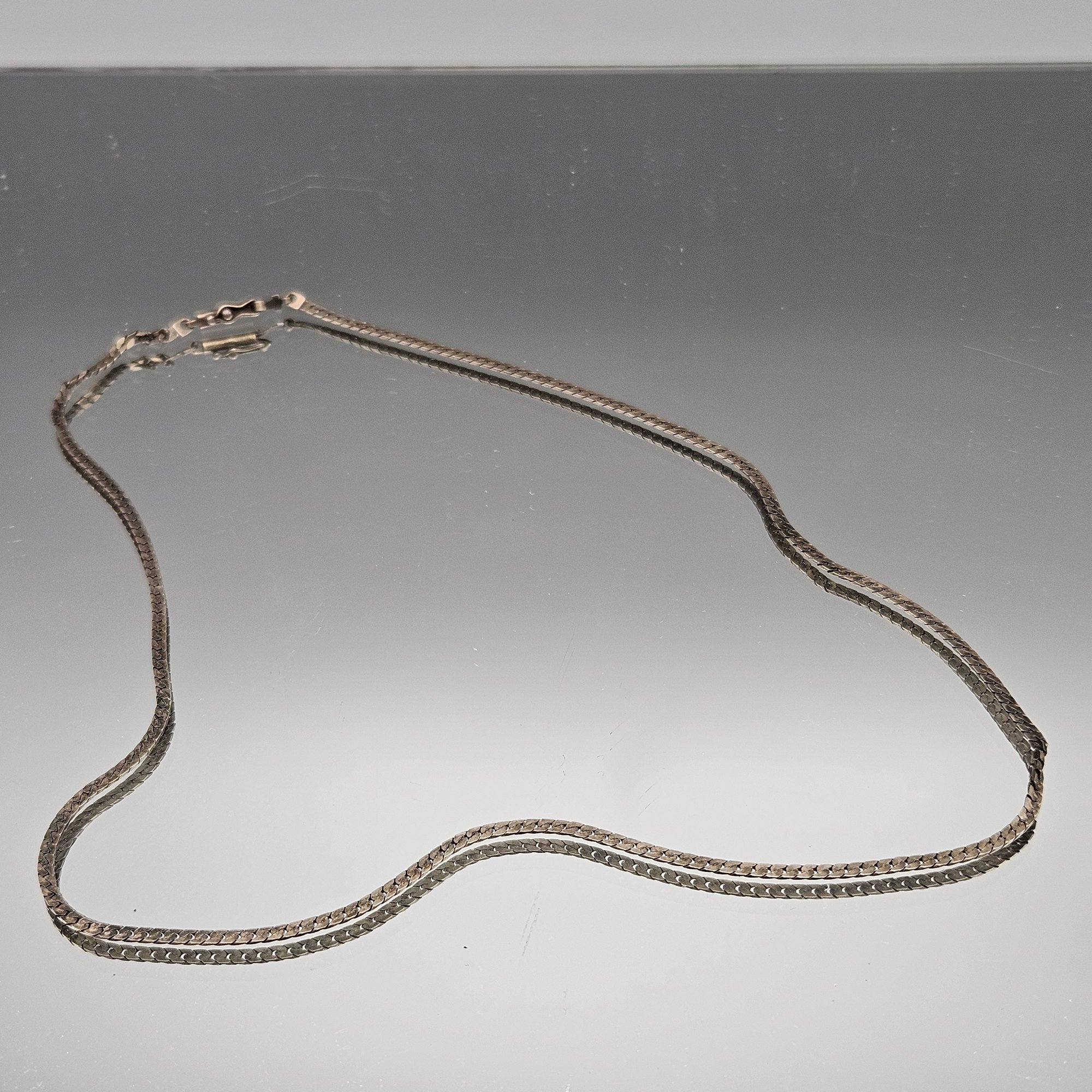 Vintage Italian 925 Sterling Silver Flat Herringbone Chain Necklace, 19"