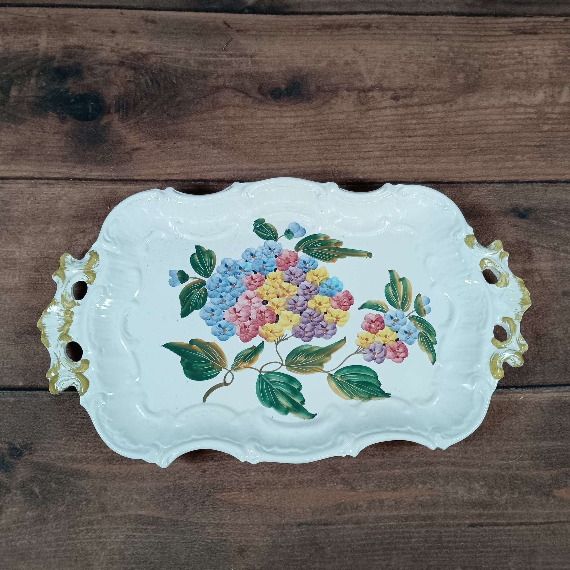 vintage Italian ceramic Tray/ Plate hand-made/ Hand Painted Art Pottery 13”x19”