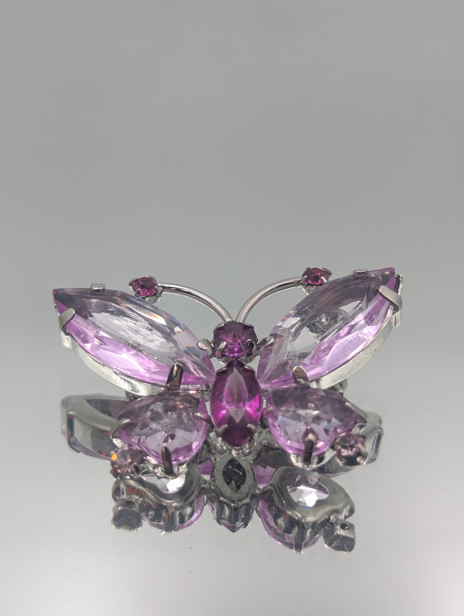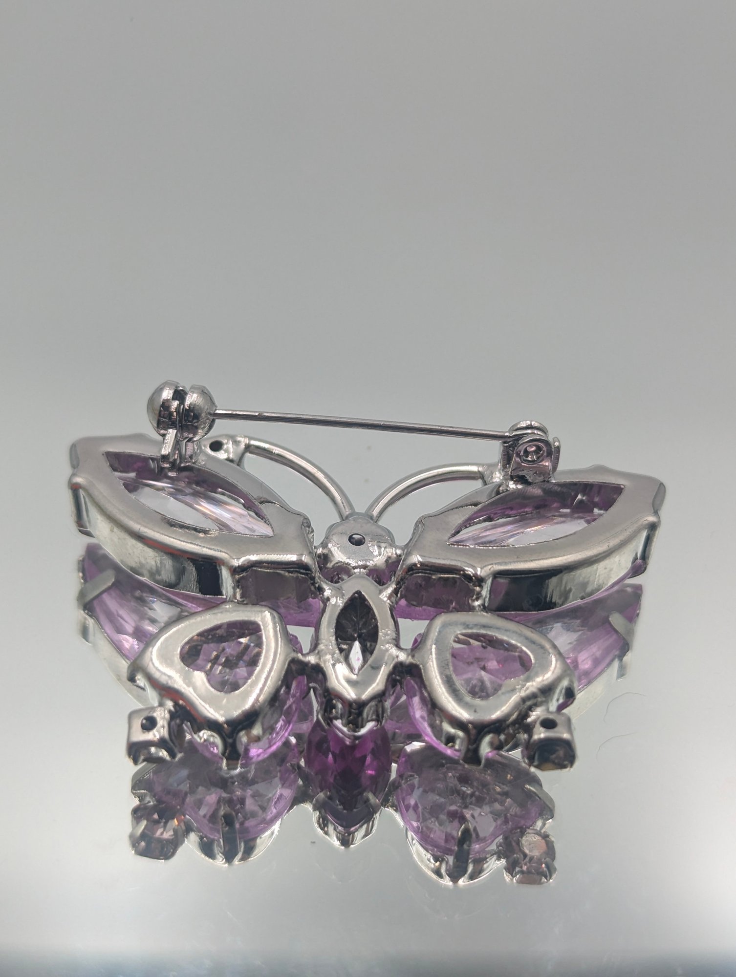 Vintage Lavender Crystal & Silver-Tone Butterfly Brooch