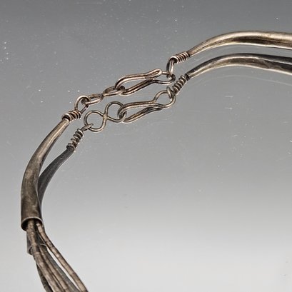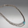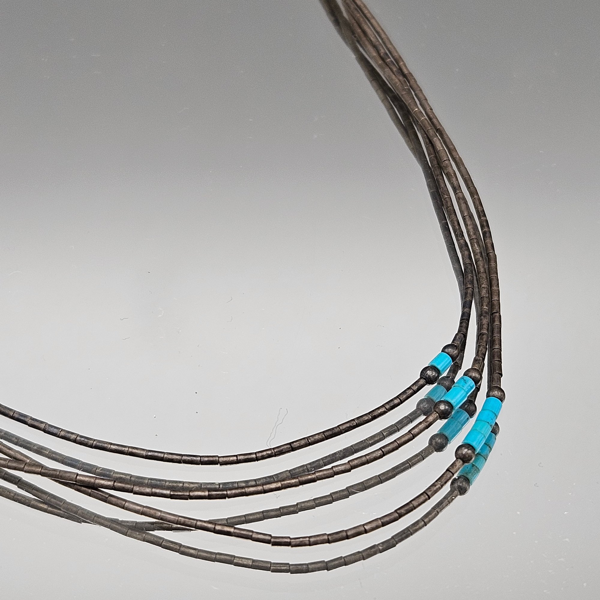 Vintage Liquid Silver Multi-Strand Necklace With Turquoise Heishi Beads
