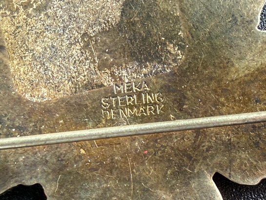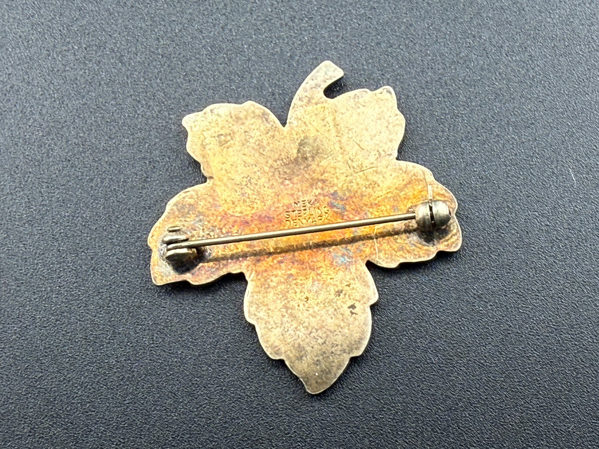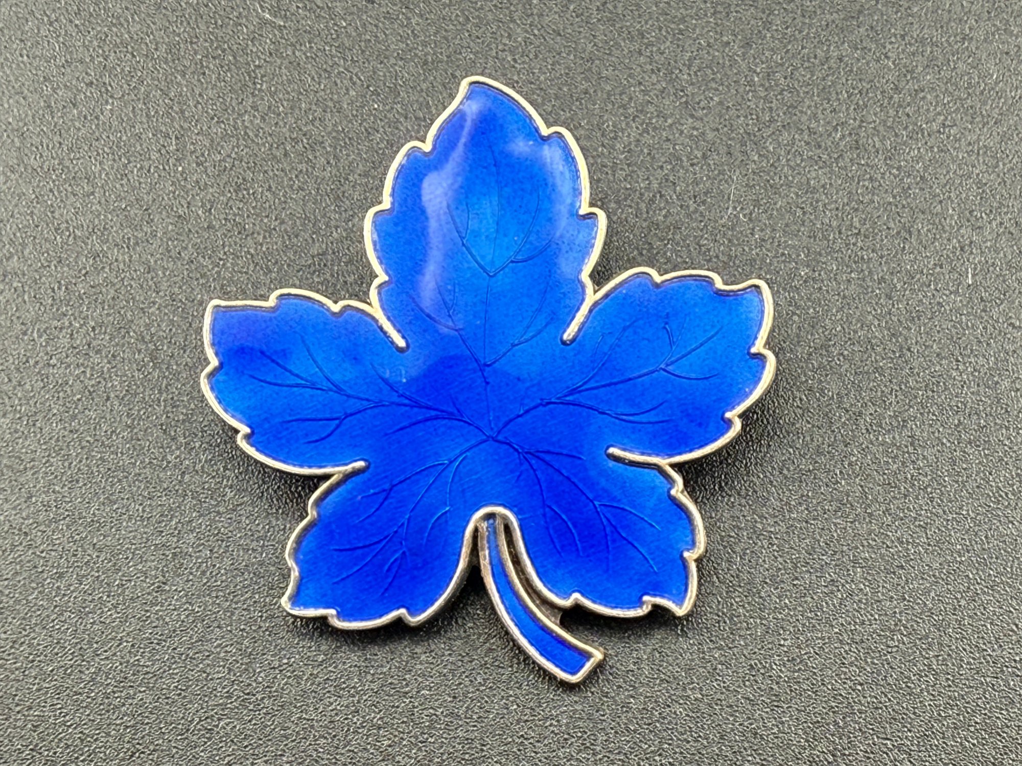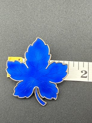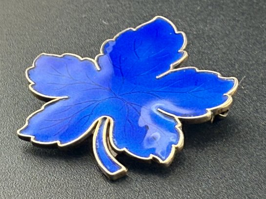 Vintage Meka Denmark Blue Guilloché Enamel Sterling Silver Maple Leaf Brooch