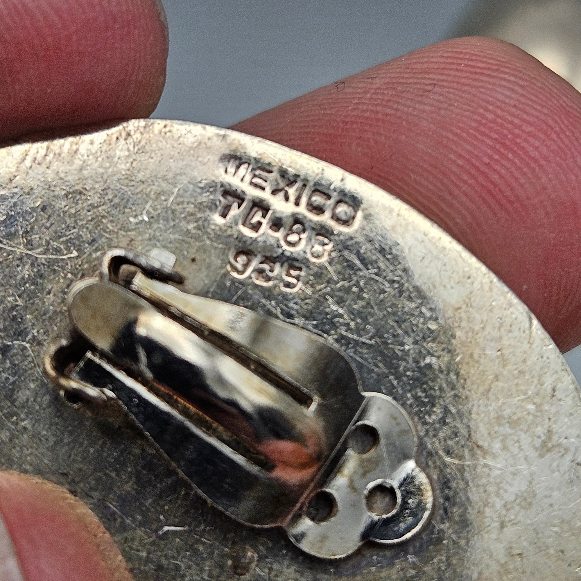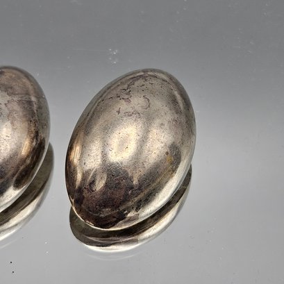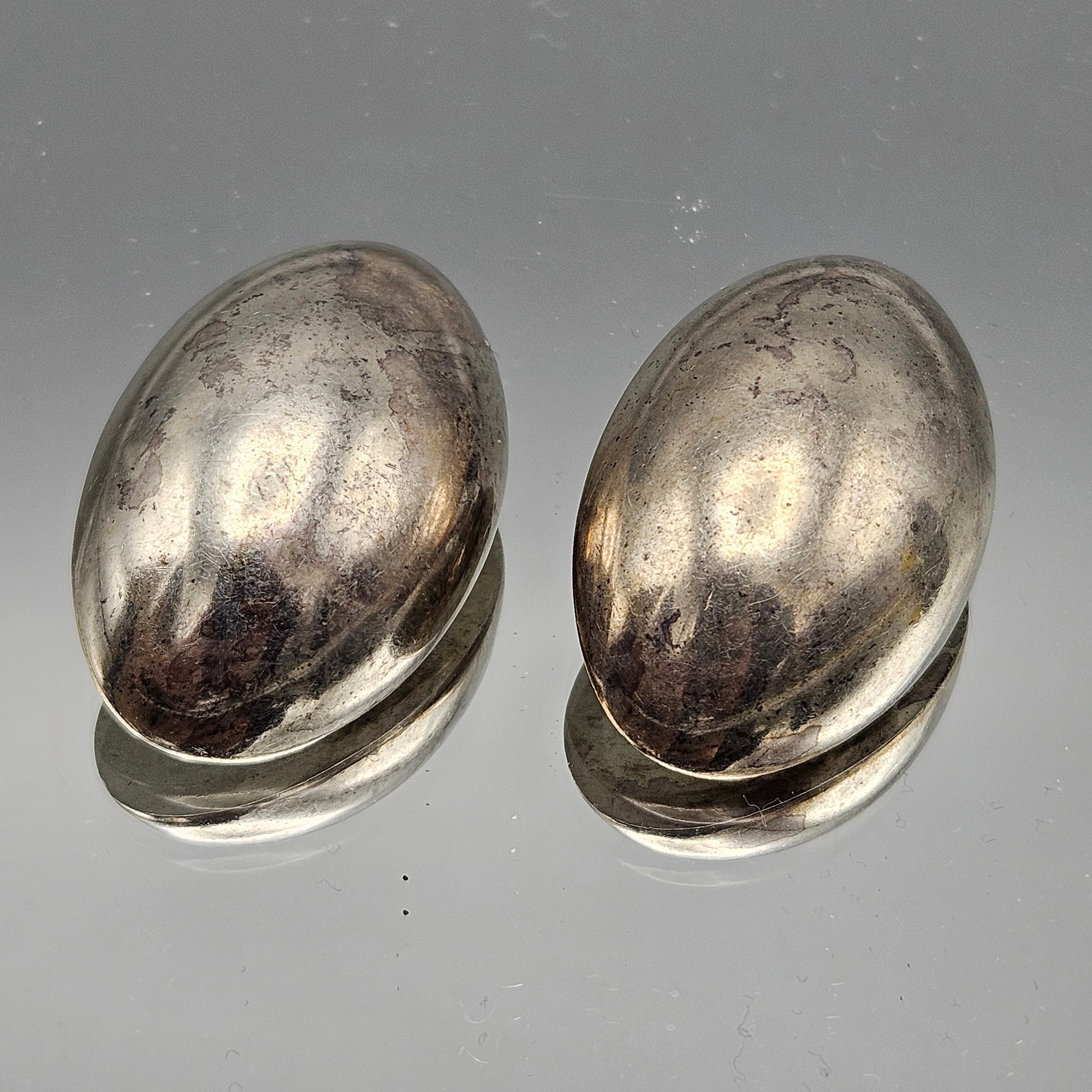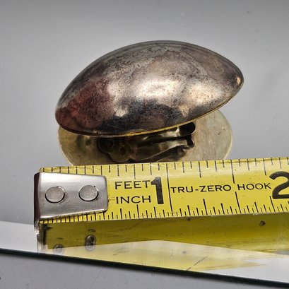 These elegant vintage clip-on earrings feature a bold, puffed oval design crafted from high-quality Mexican sterling silver