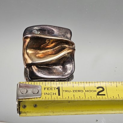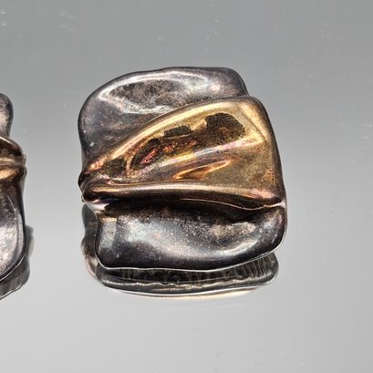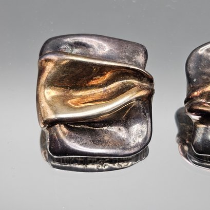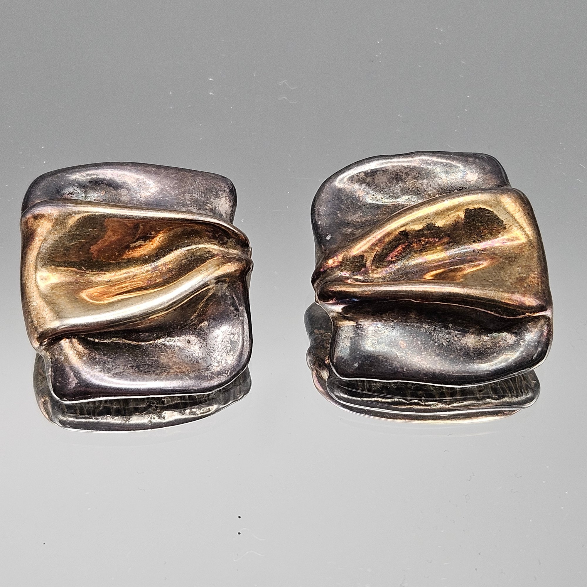 These vintage modernist clip-on earrings feature a sculptural, ribbon-like design with a wavy, organic form