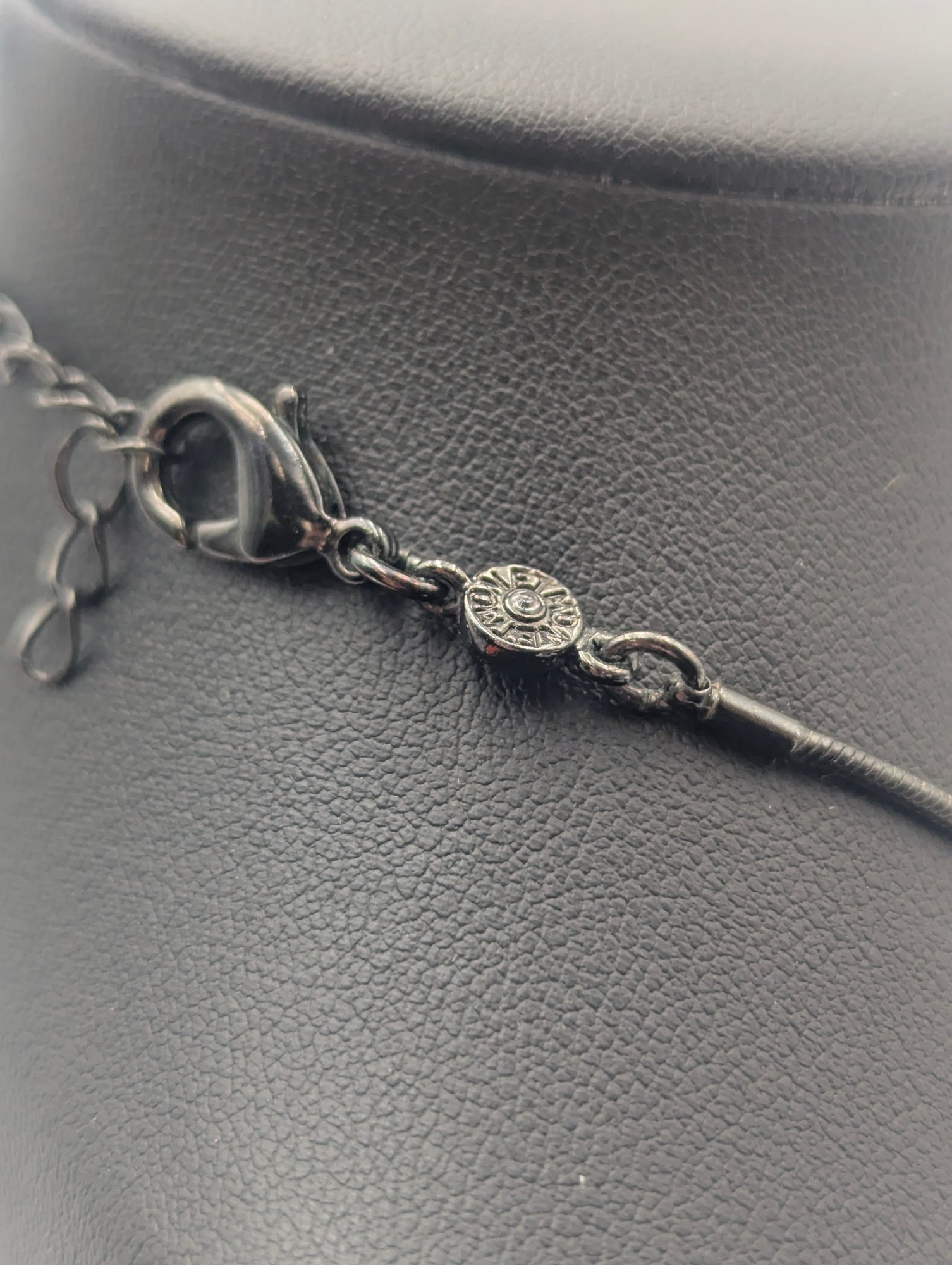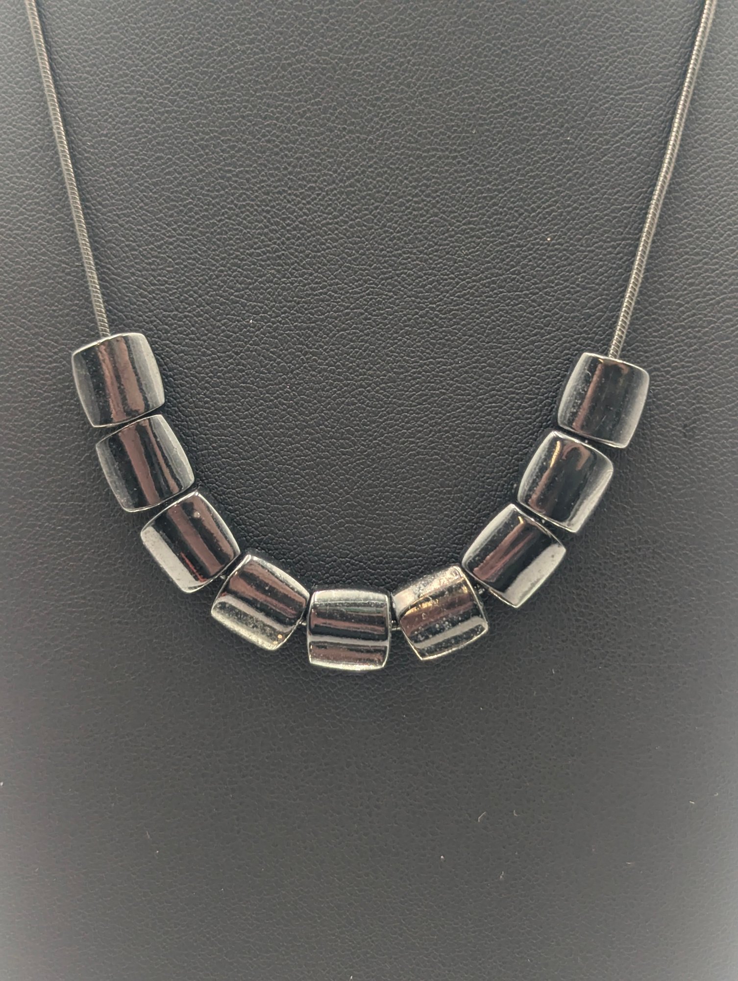 Vintage Monet Gunmetal Snake Chain Necklace With Sliding Barrel Beads