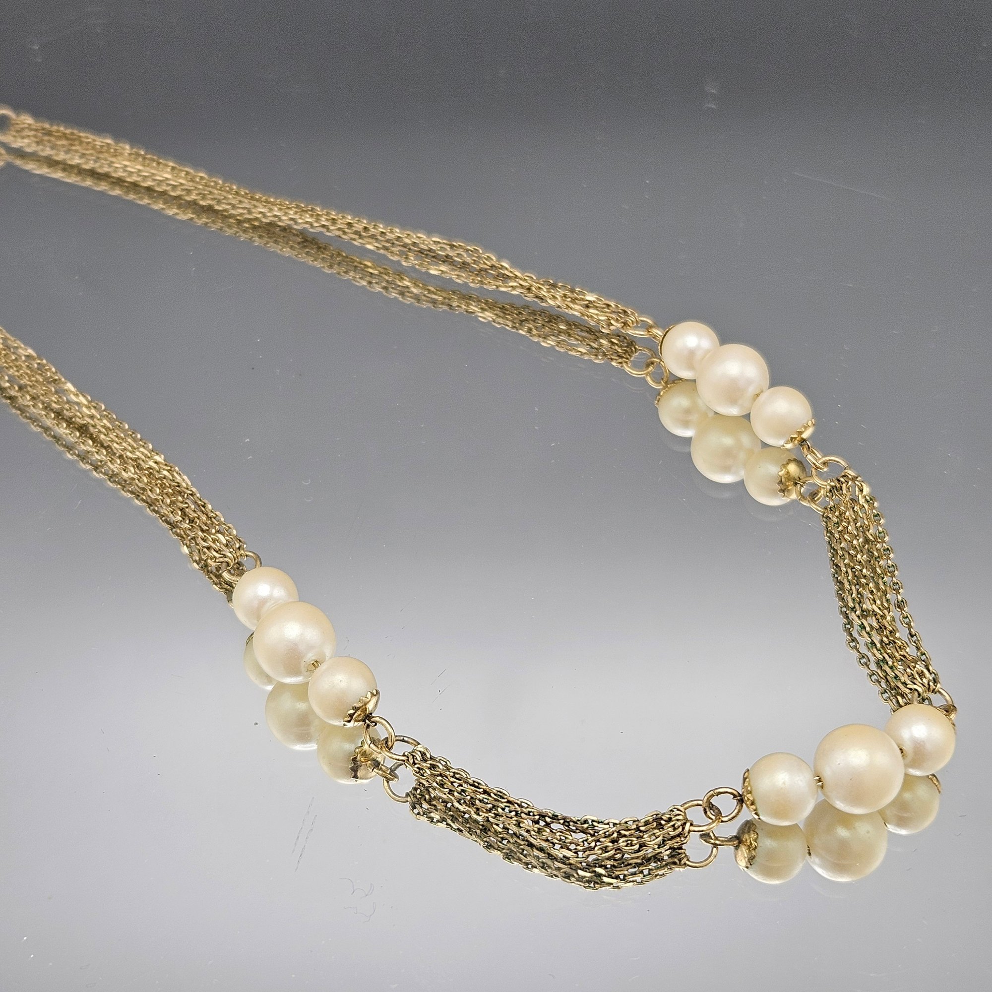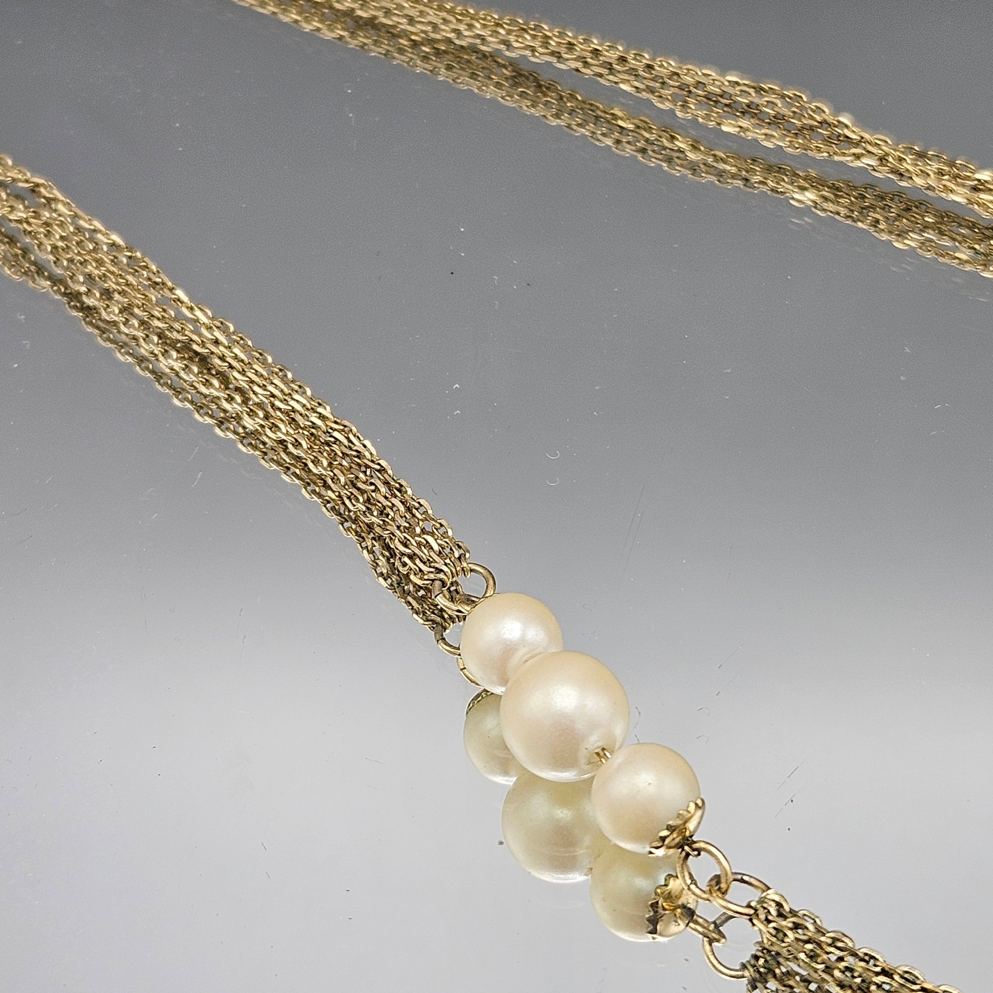 Vintage Multi-Strand Gold-Tone Chain Necklace with Faux Pearl Accents