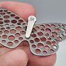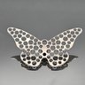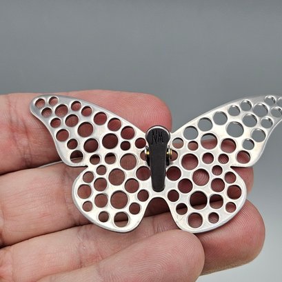 This vintage gold-tone butterfly clip features a sophisticated open-work design with intricate perforations that give the wings a delicate, airy appearance.