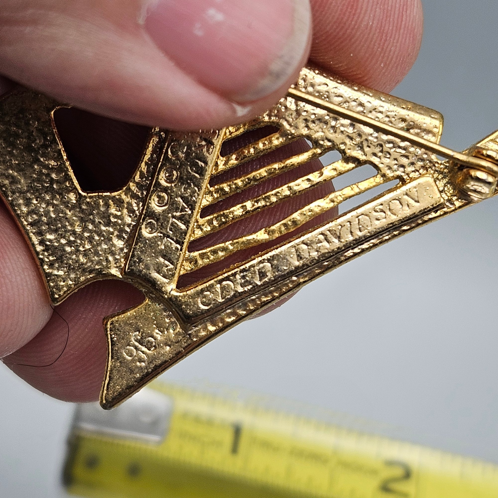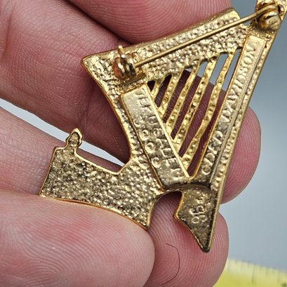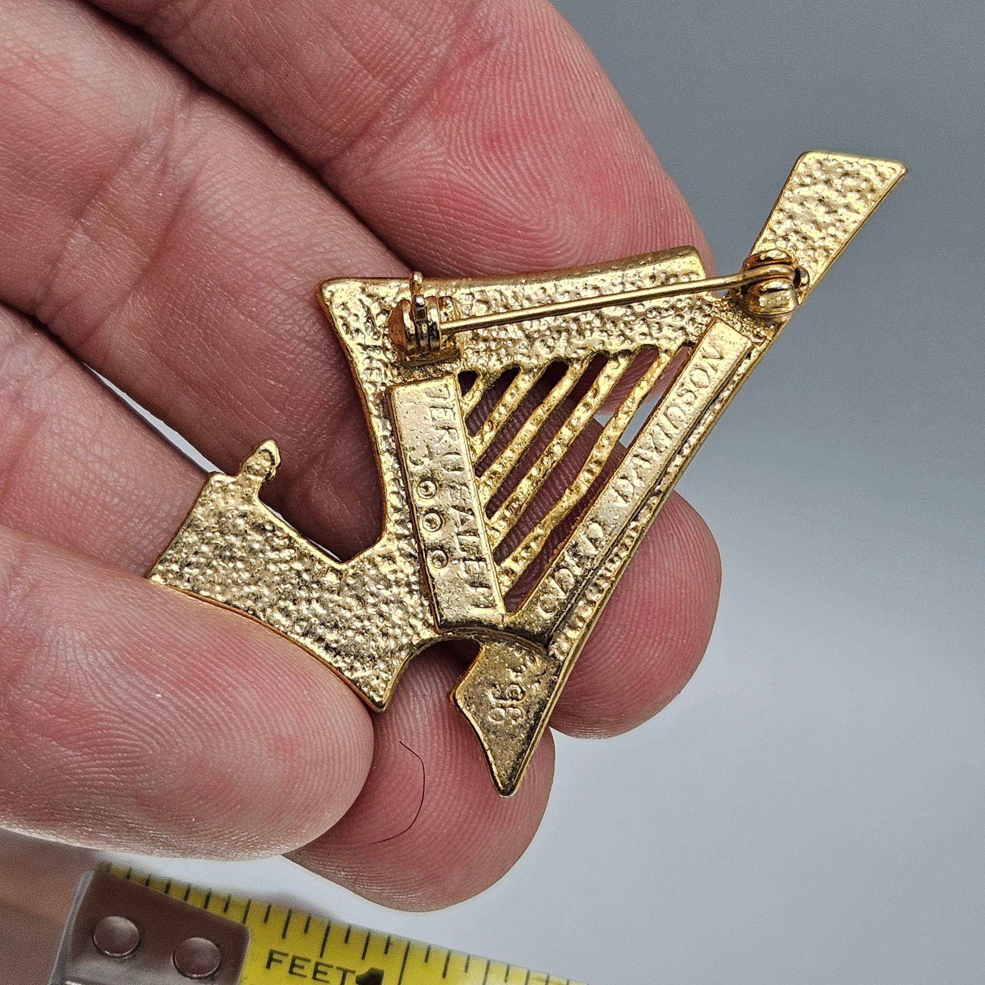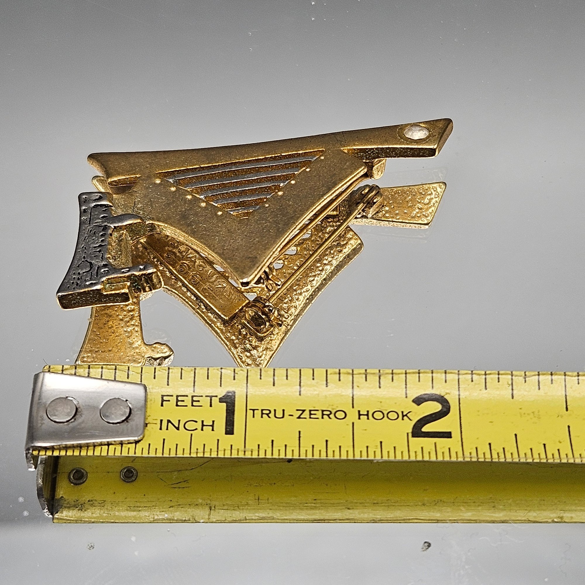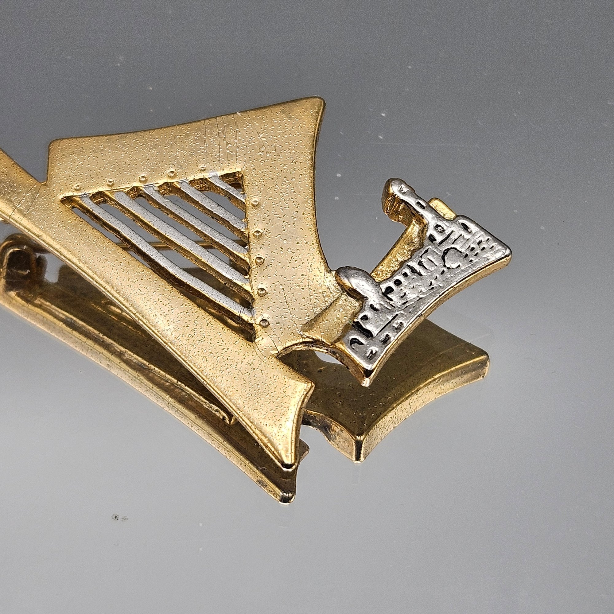 This elegant gold-tone brooch by designer Oded Davidson features a stylized King David's harp and a cityscape silhouette, created to commemorate the "Jerusalem 3000" anniversary.