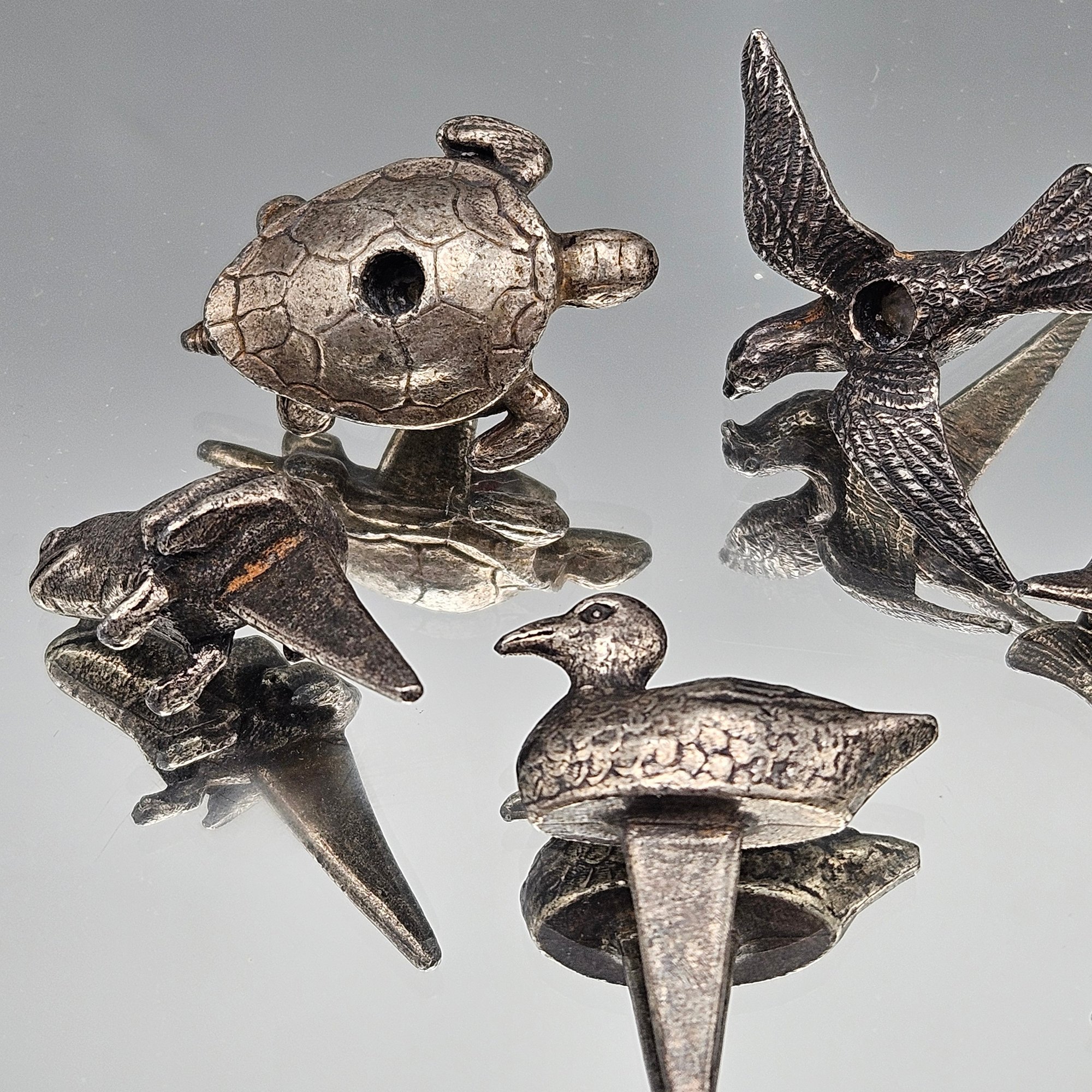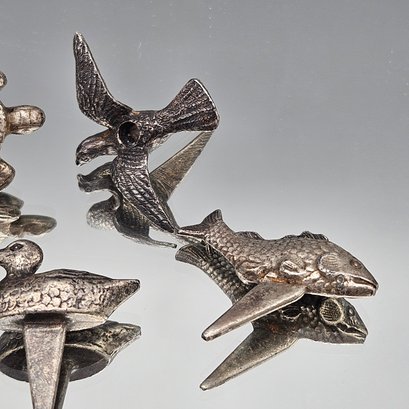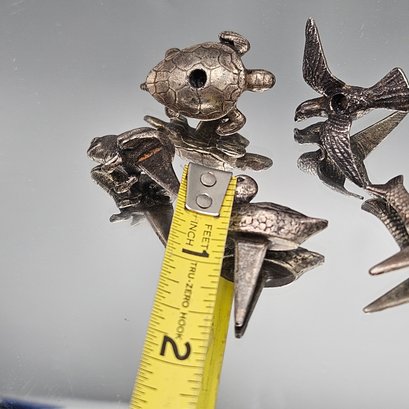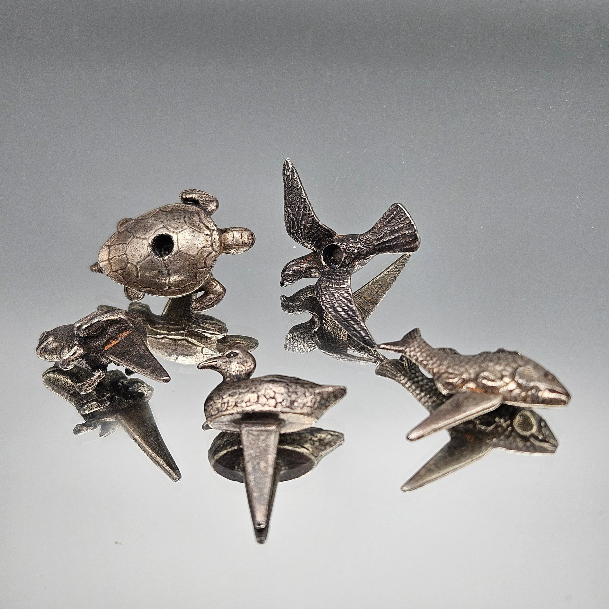 Vintage Pewter-Tone Animal Candle Holders Set - Turtle, Duck, Eagle, Fish, Frog