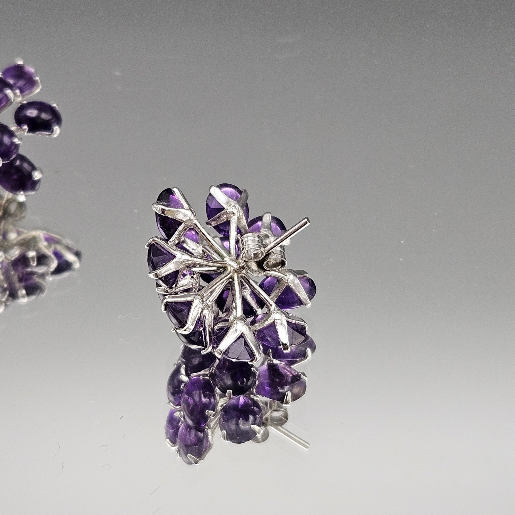 Vintage Purple Stone Cluster Stud Earrings