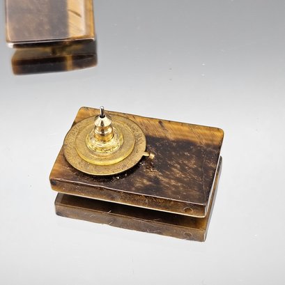 Vintage Rectangular Tiger's Eye Stud Earrings