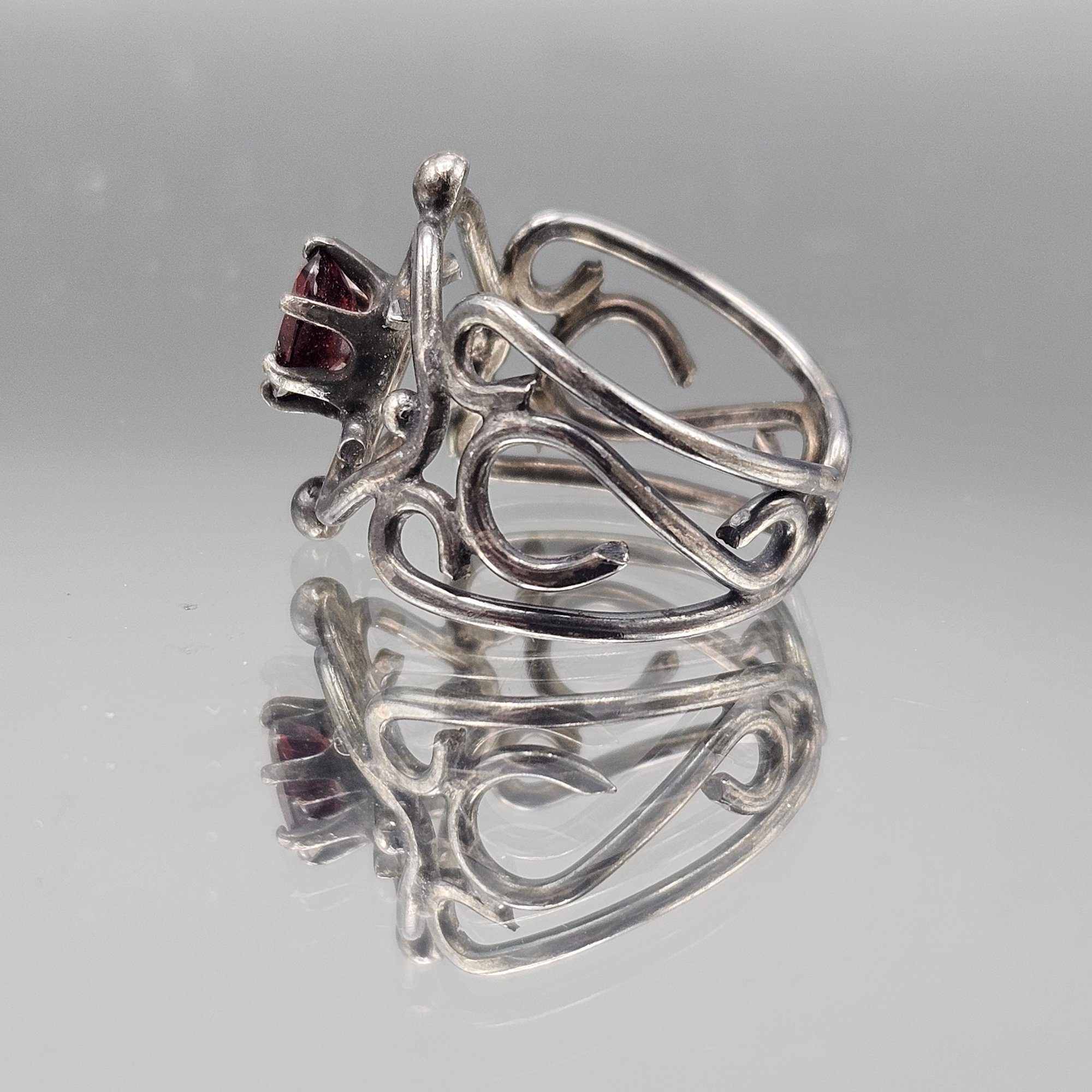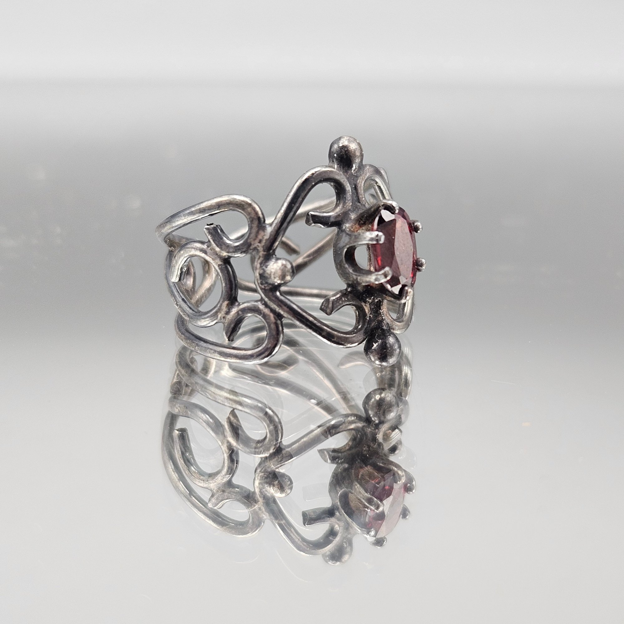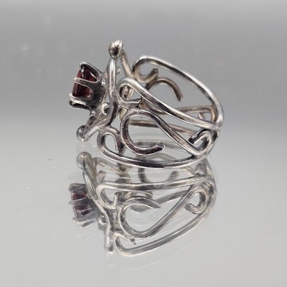 Vintage Scrollwork Ring W/ Red Oval Stone Size 7