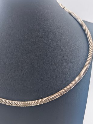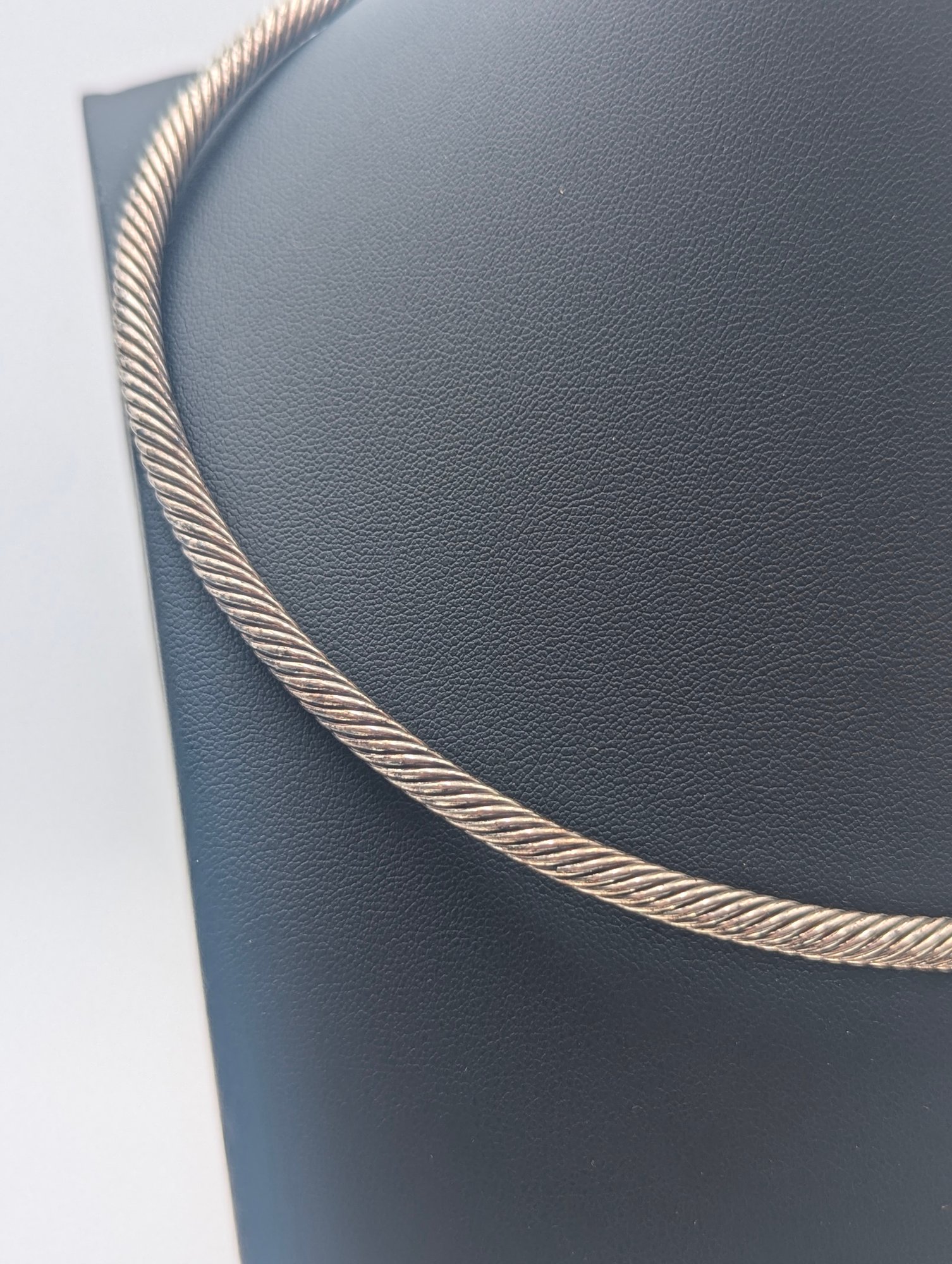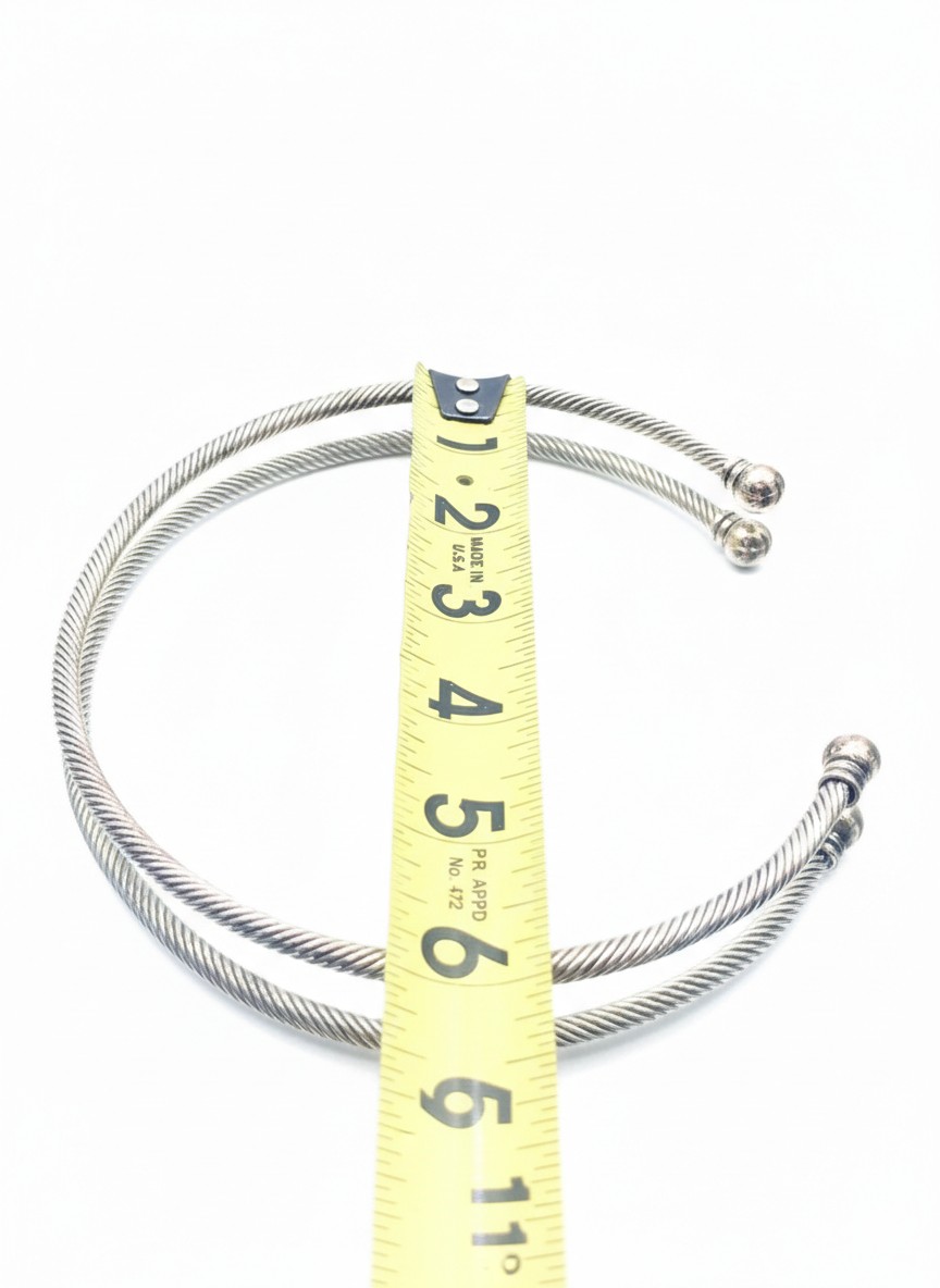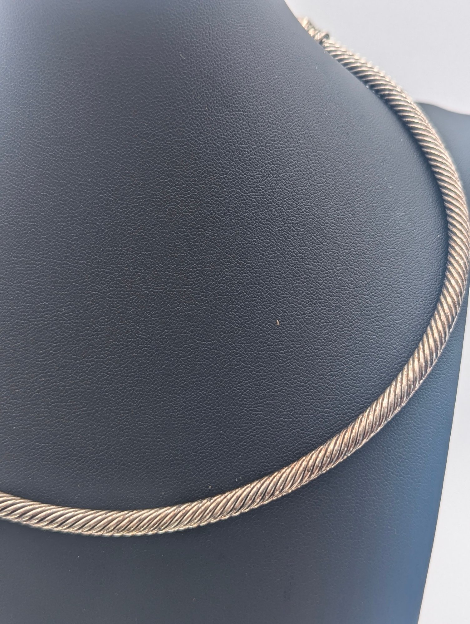 Vintage Silver Tone Cable Torque Necklace - Adjustable Open Cuff Style