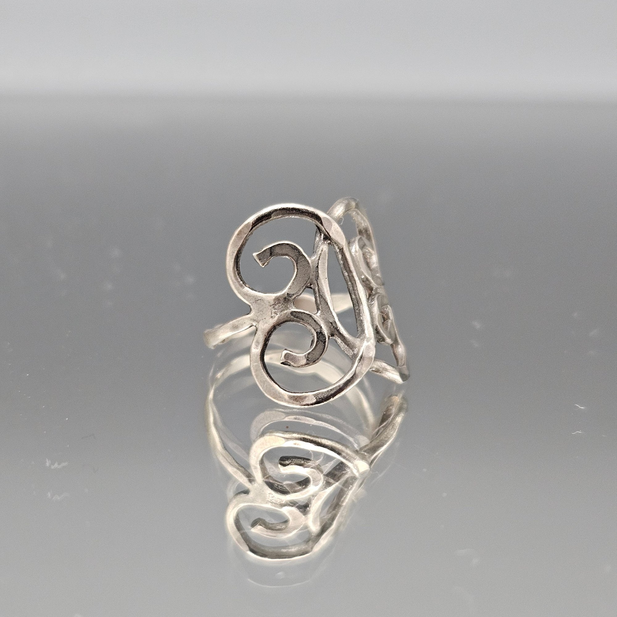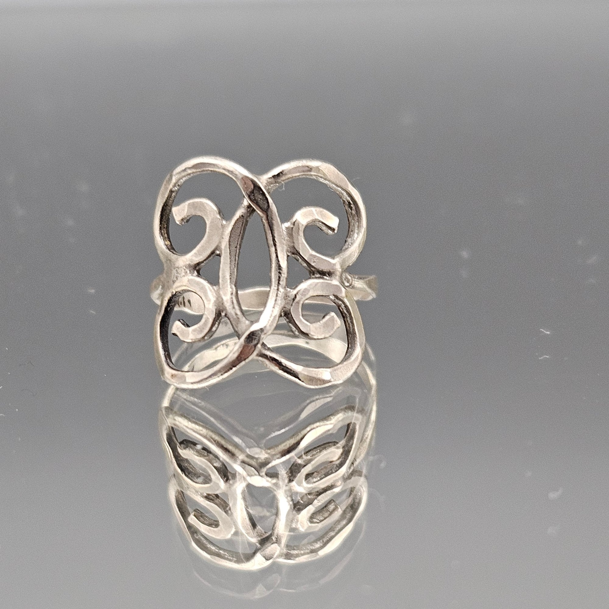 Vintage Silver Tone Textured Abstract Statement Ring