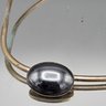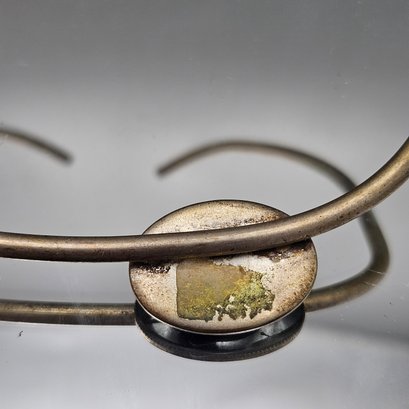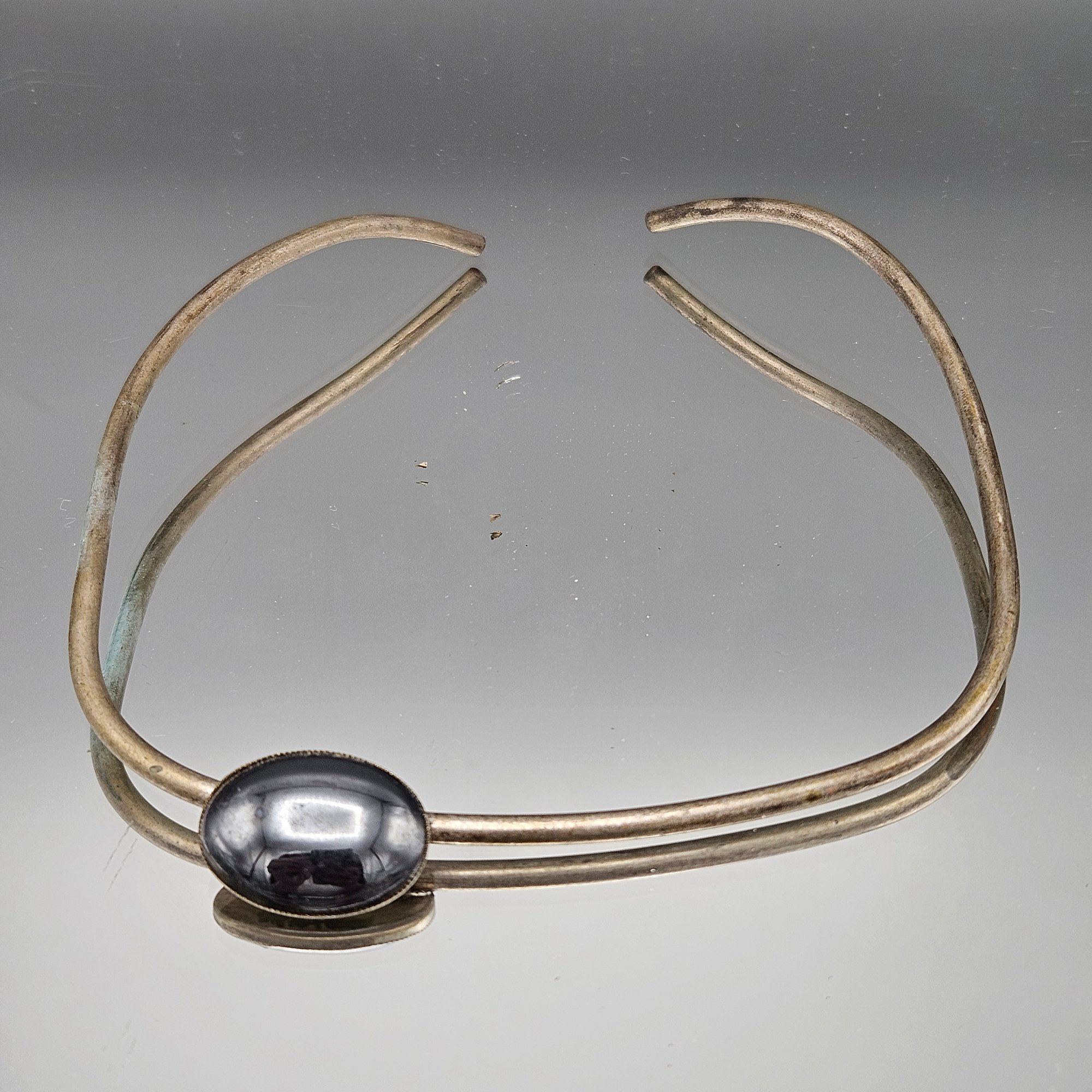 Vintage Silver Tone Wire Cuff Necklace with Hematite Cabochon ~5