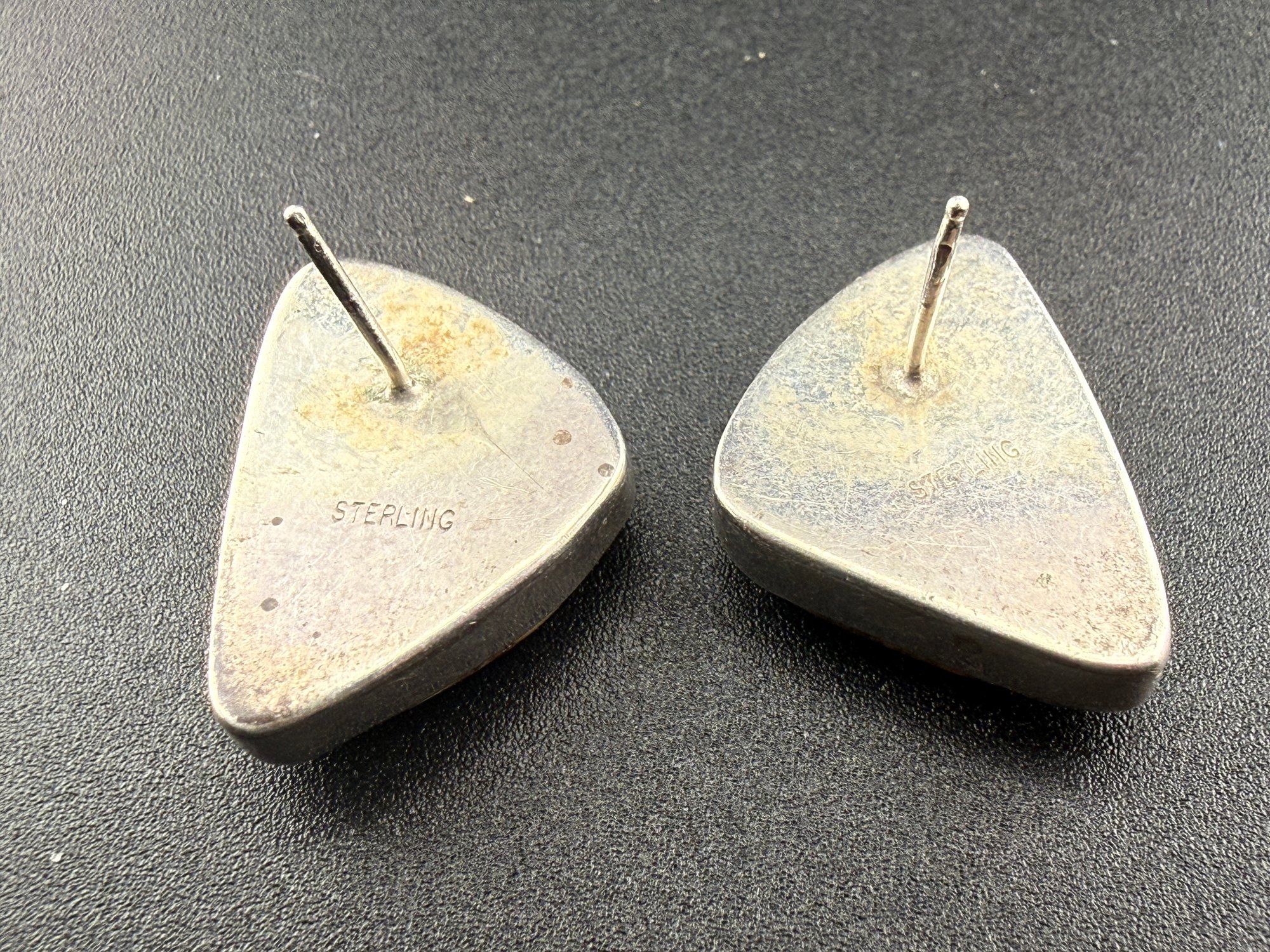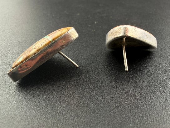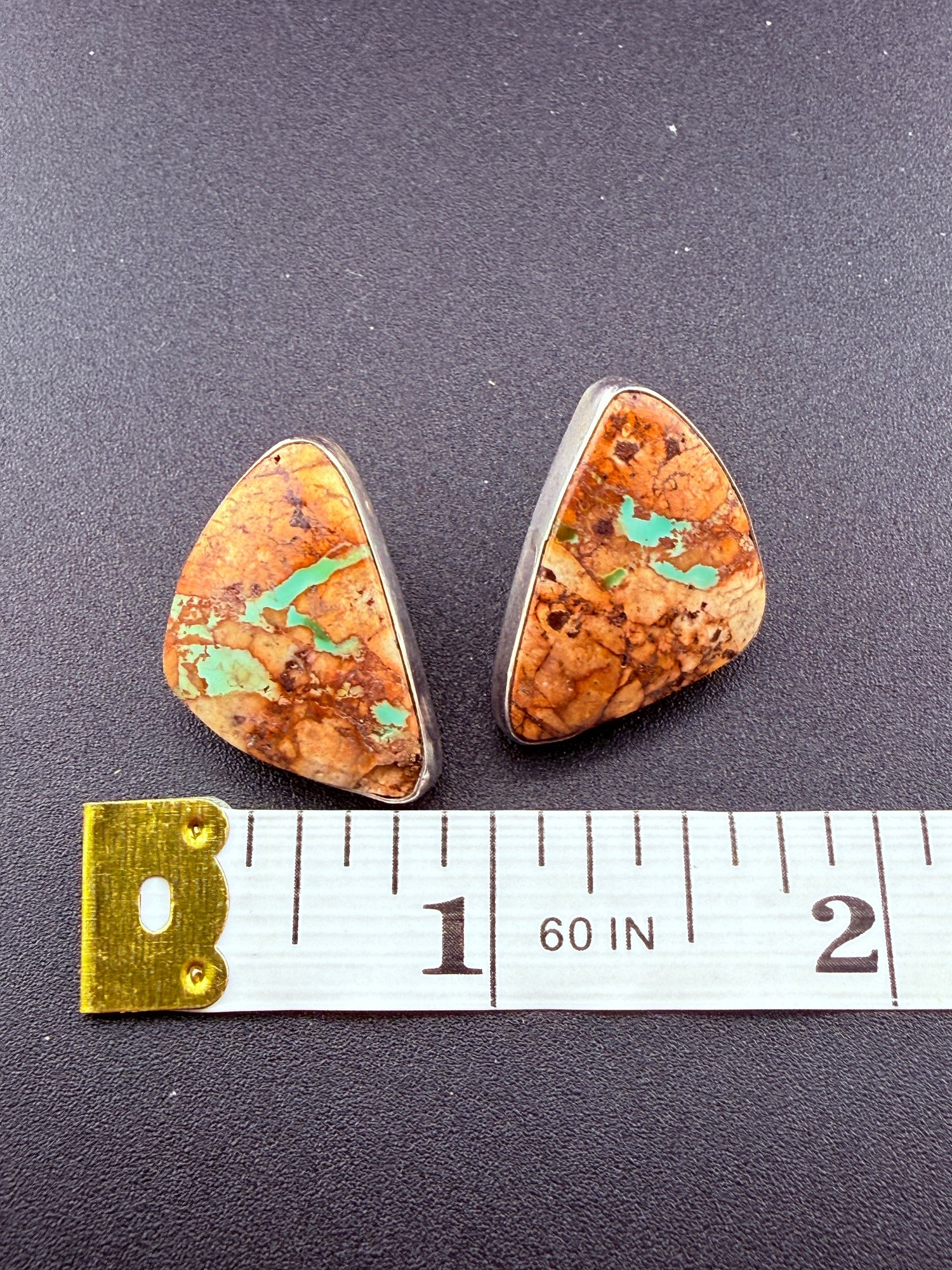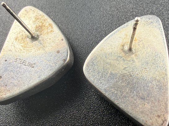 Vintage Southwestern Sterling Silver & Ribbon Turquoise Triangular Post Earrings