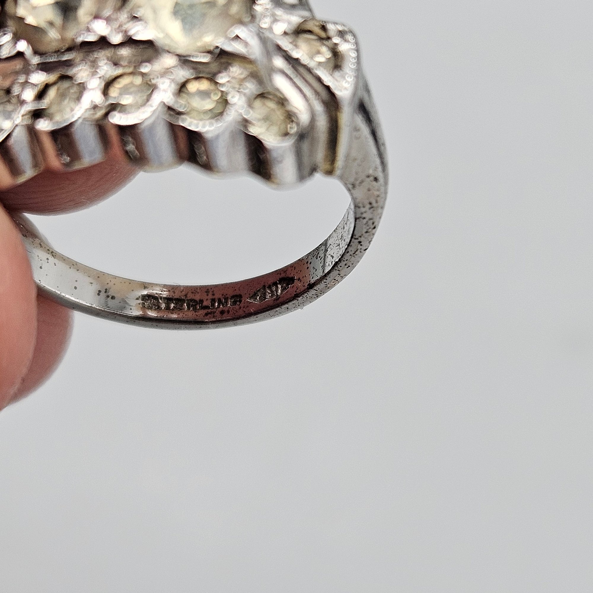 Vintage Sterling Silver 925 Multi-Stone Cluster Ring Statement Size 6–6.5