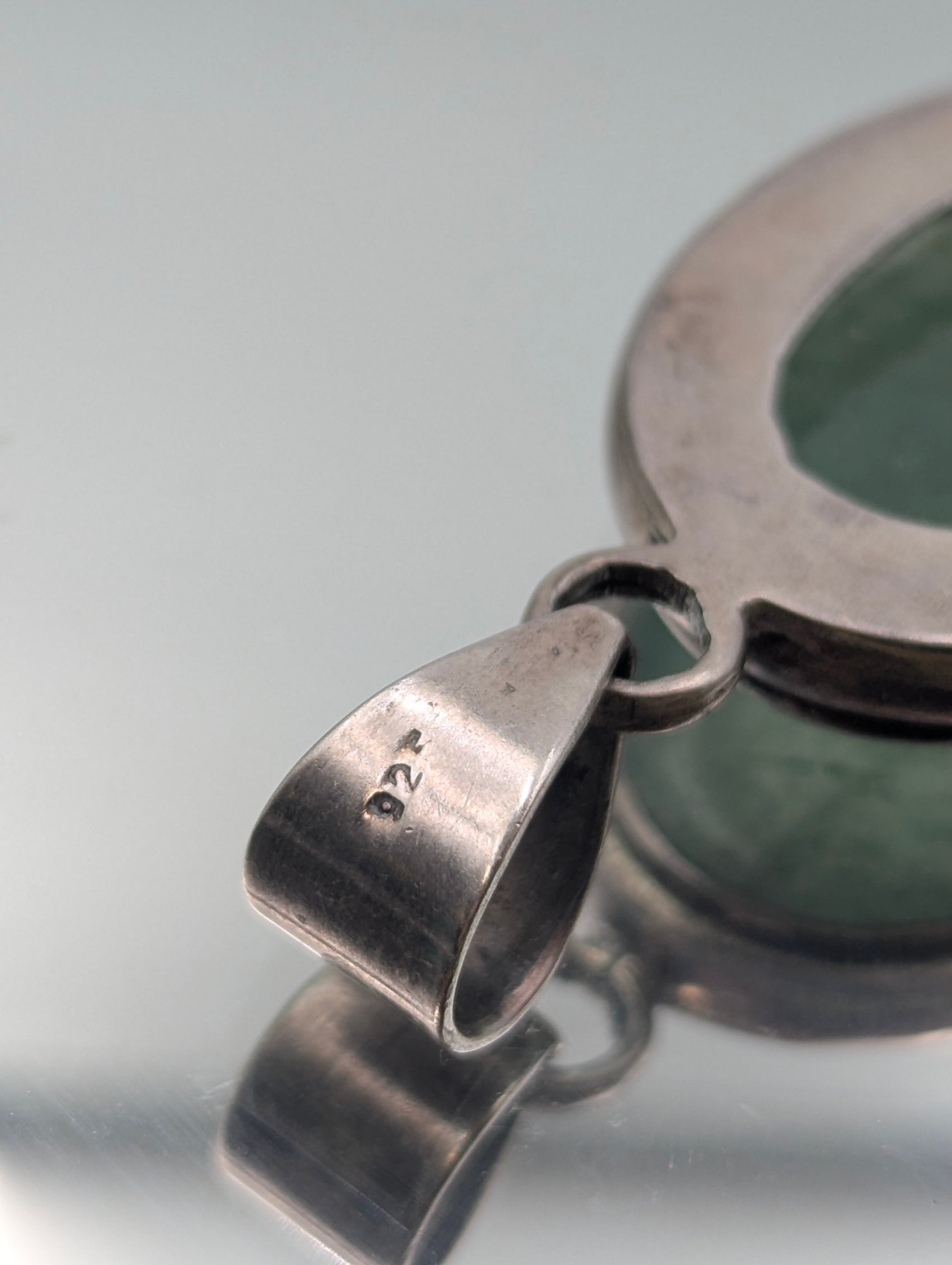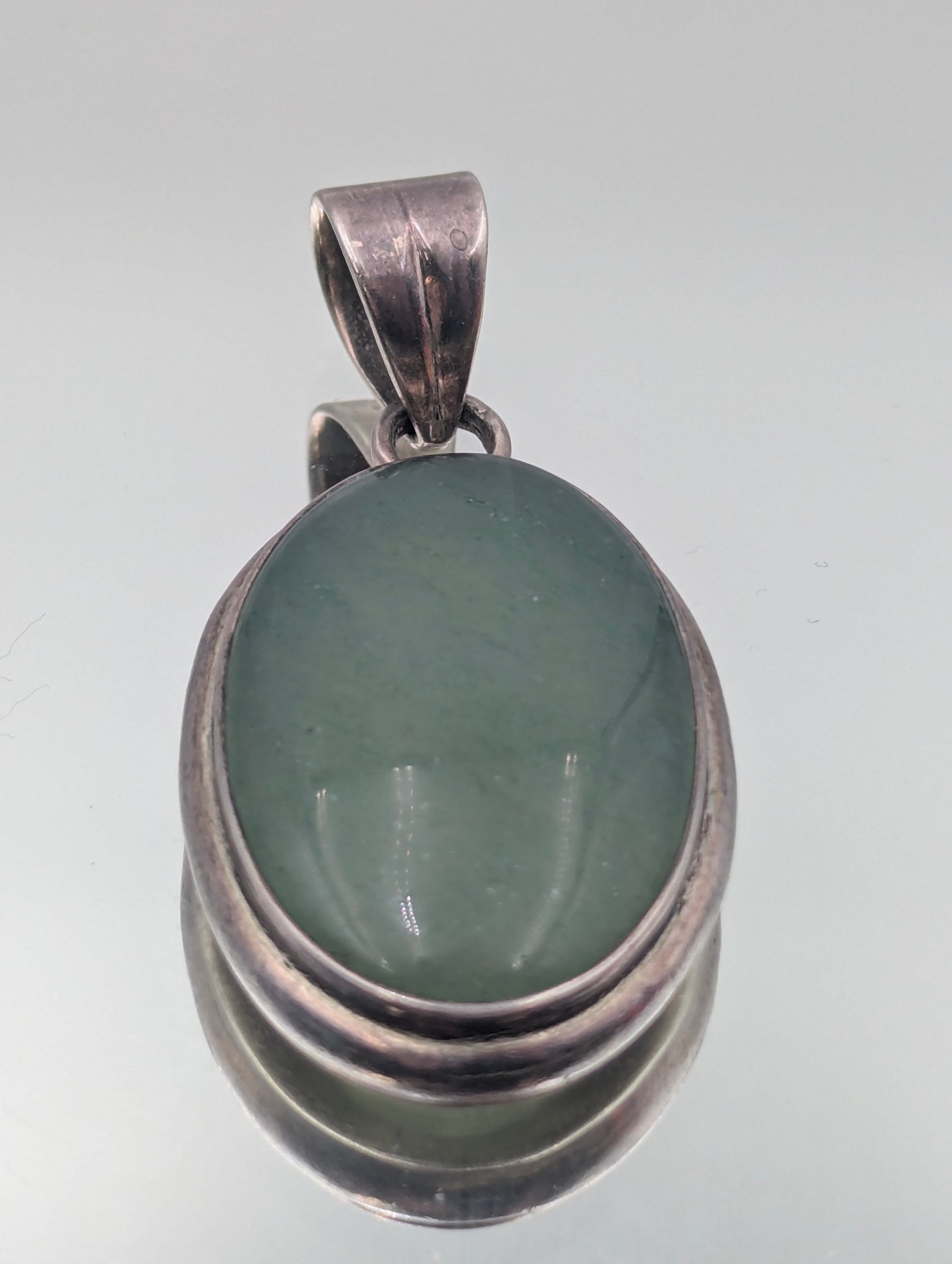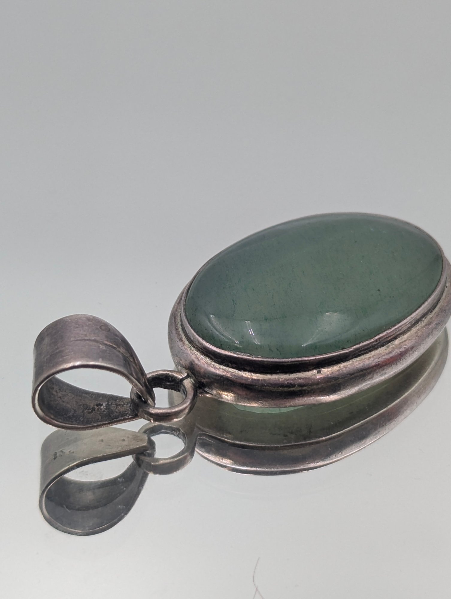Vintage Sterling Silver 925 Oval Green Aventurine Jade Pendant