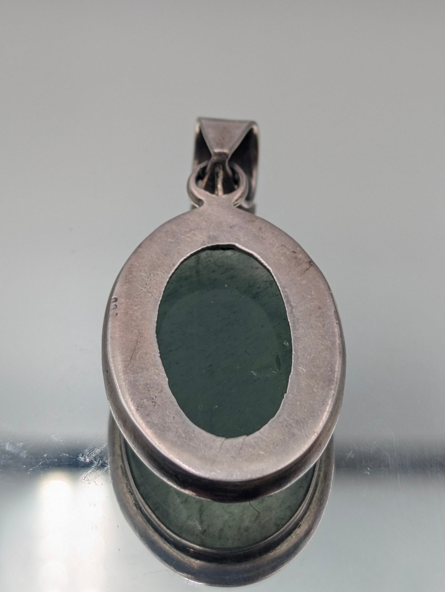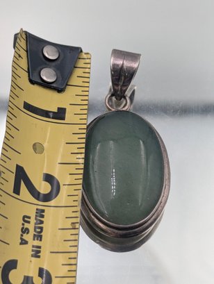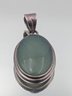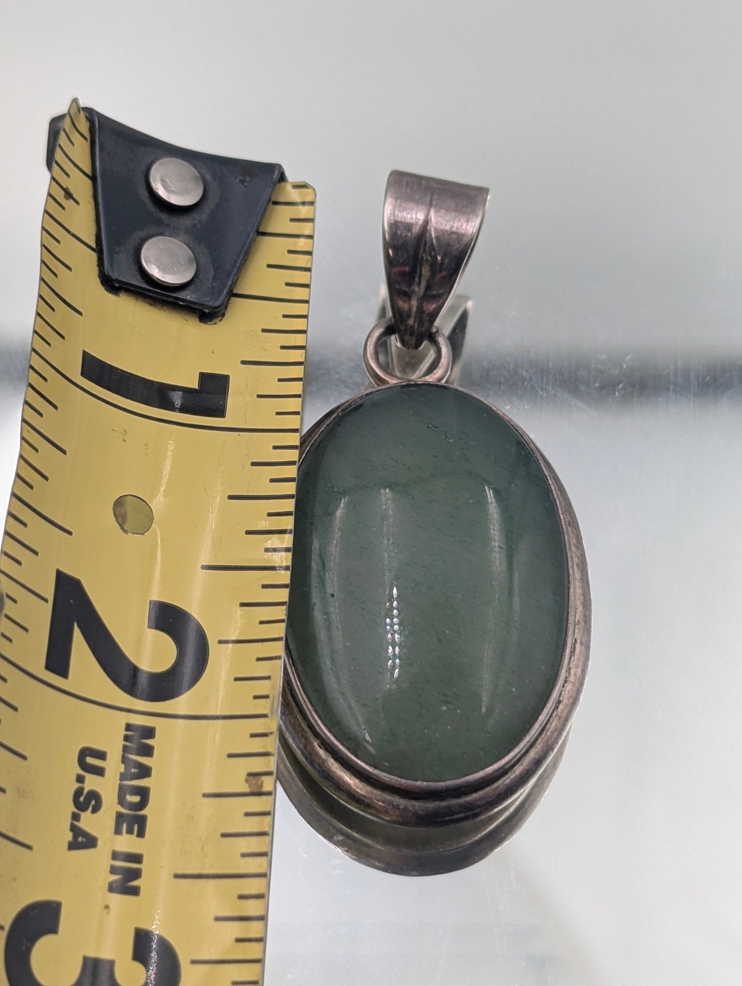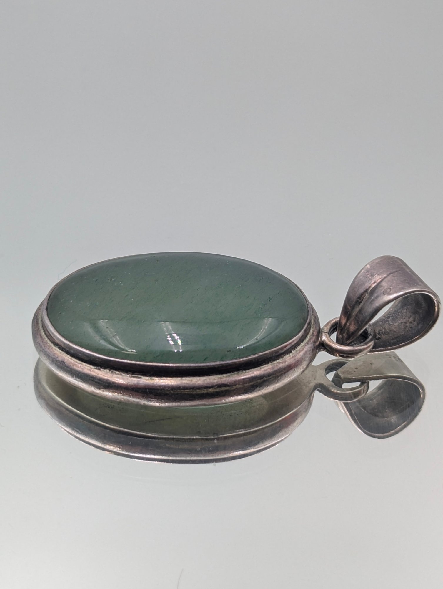 Vintage Sterling Silver 925 Oval Green Aventurine Jade Pendant