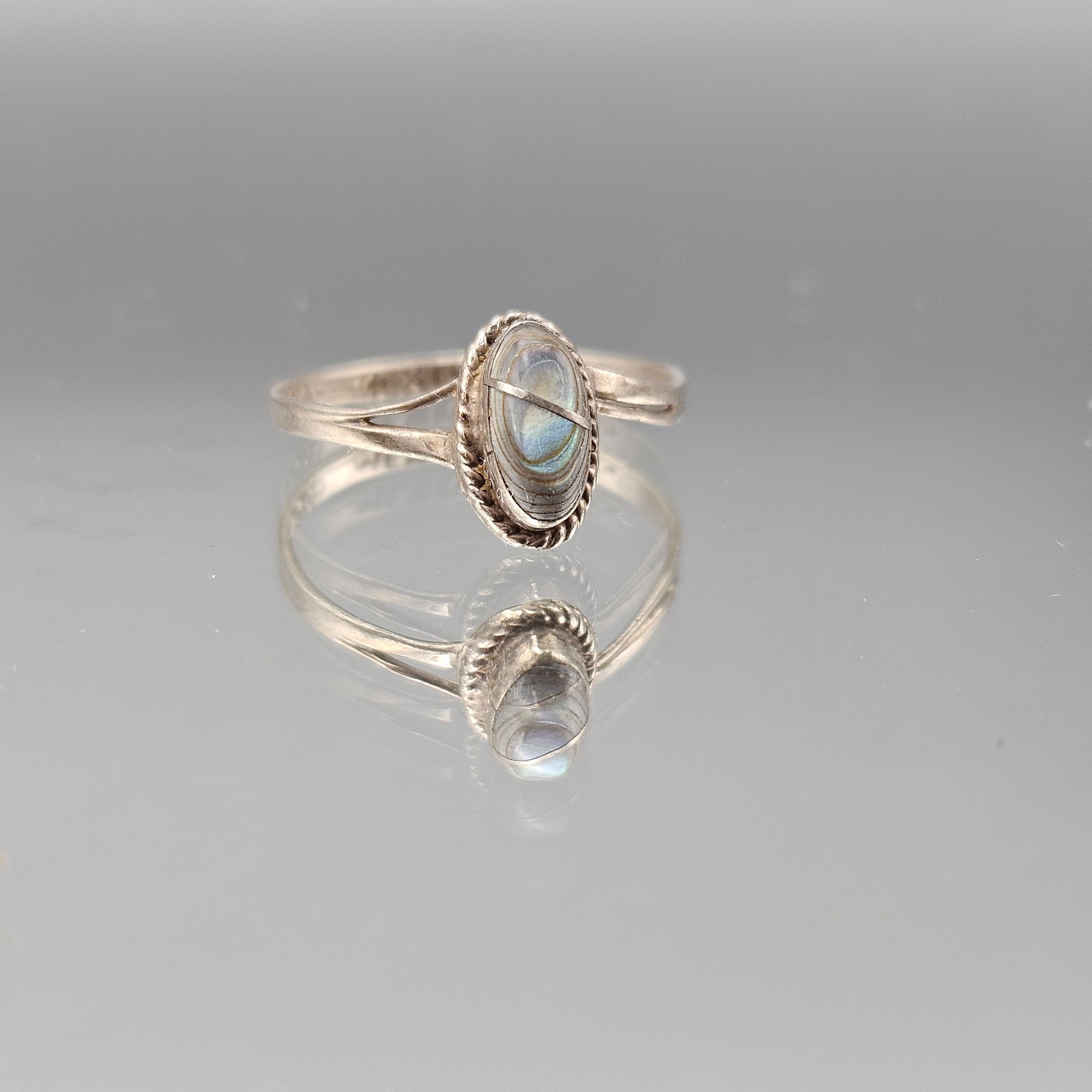 Vintage Sterling Silver Abalone Shell Oval Cabochon Ring – Size 5