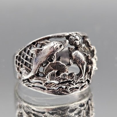 Vintage Sterling Silver Dolphin Bypass Style Ring - Size 7.5