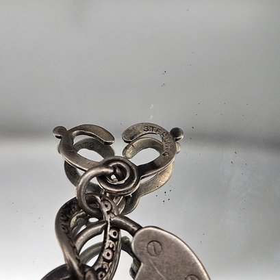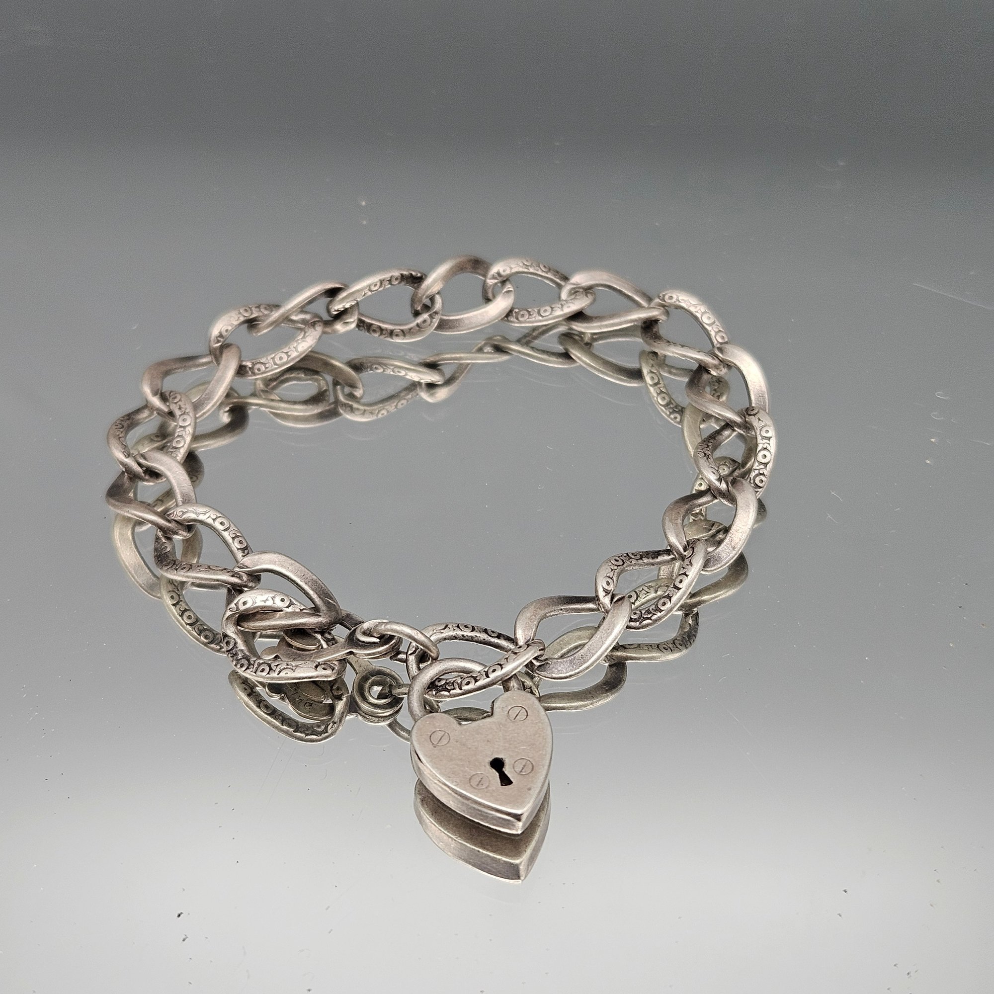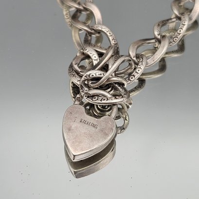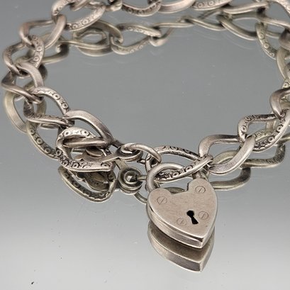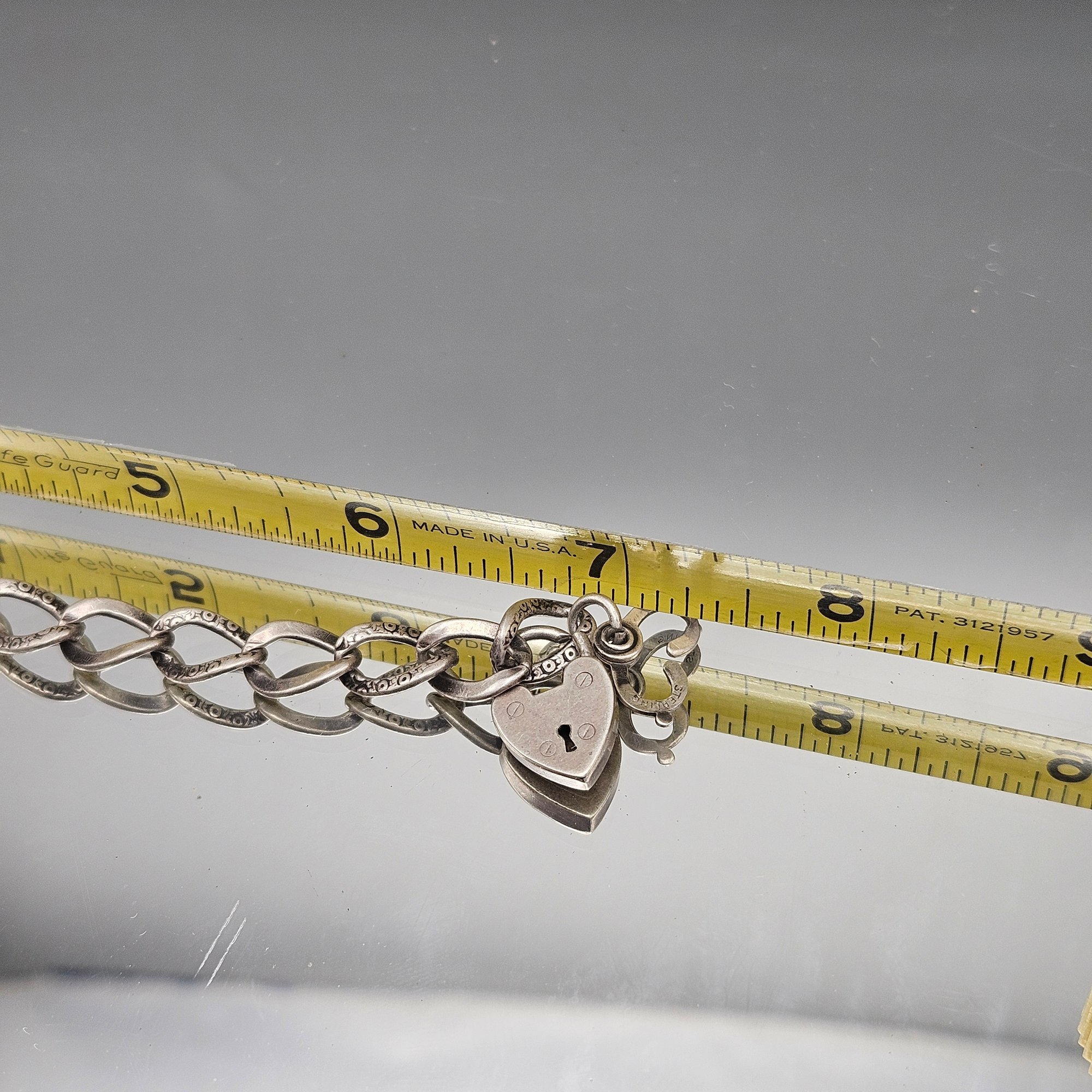 Vintage Sterling Silver Heart Padlock Curb Link Charm Bracelet