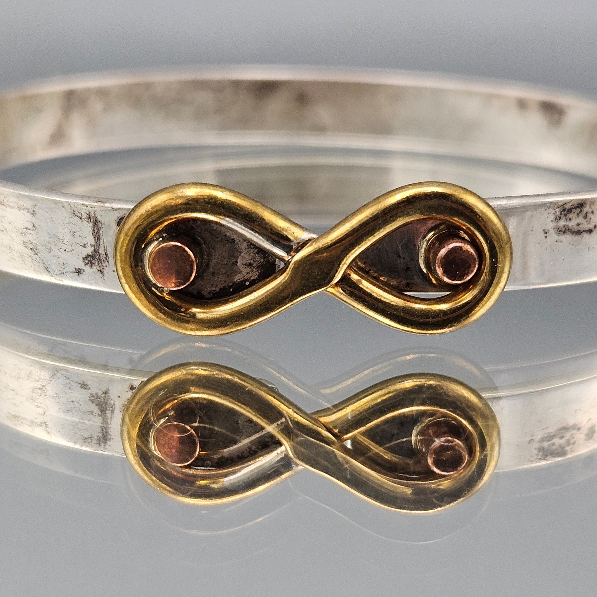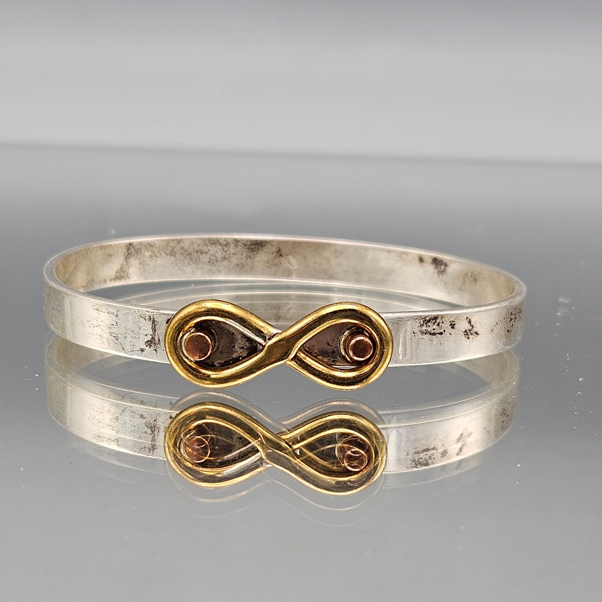 Vintage Sterling Silver & Mixed Metal Infinity Bangle Bracelet