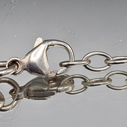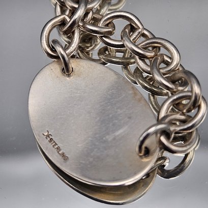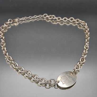 Vintage Sterling Silver Monogrammed Oval ID Tag Necklace - 17" Rollo Chain