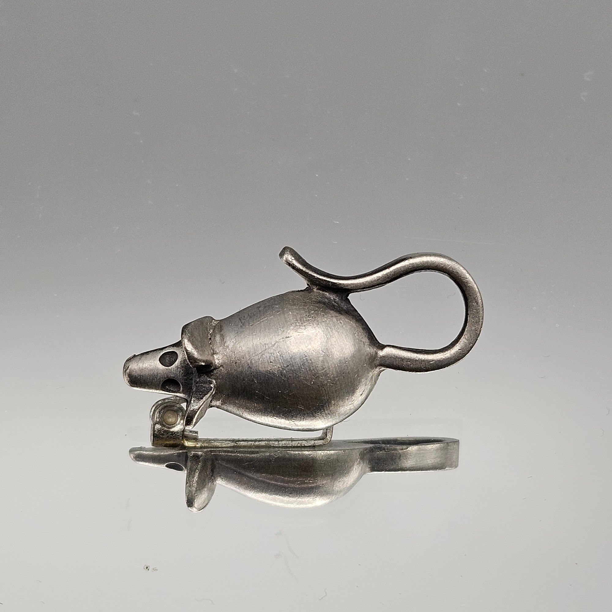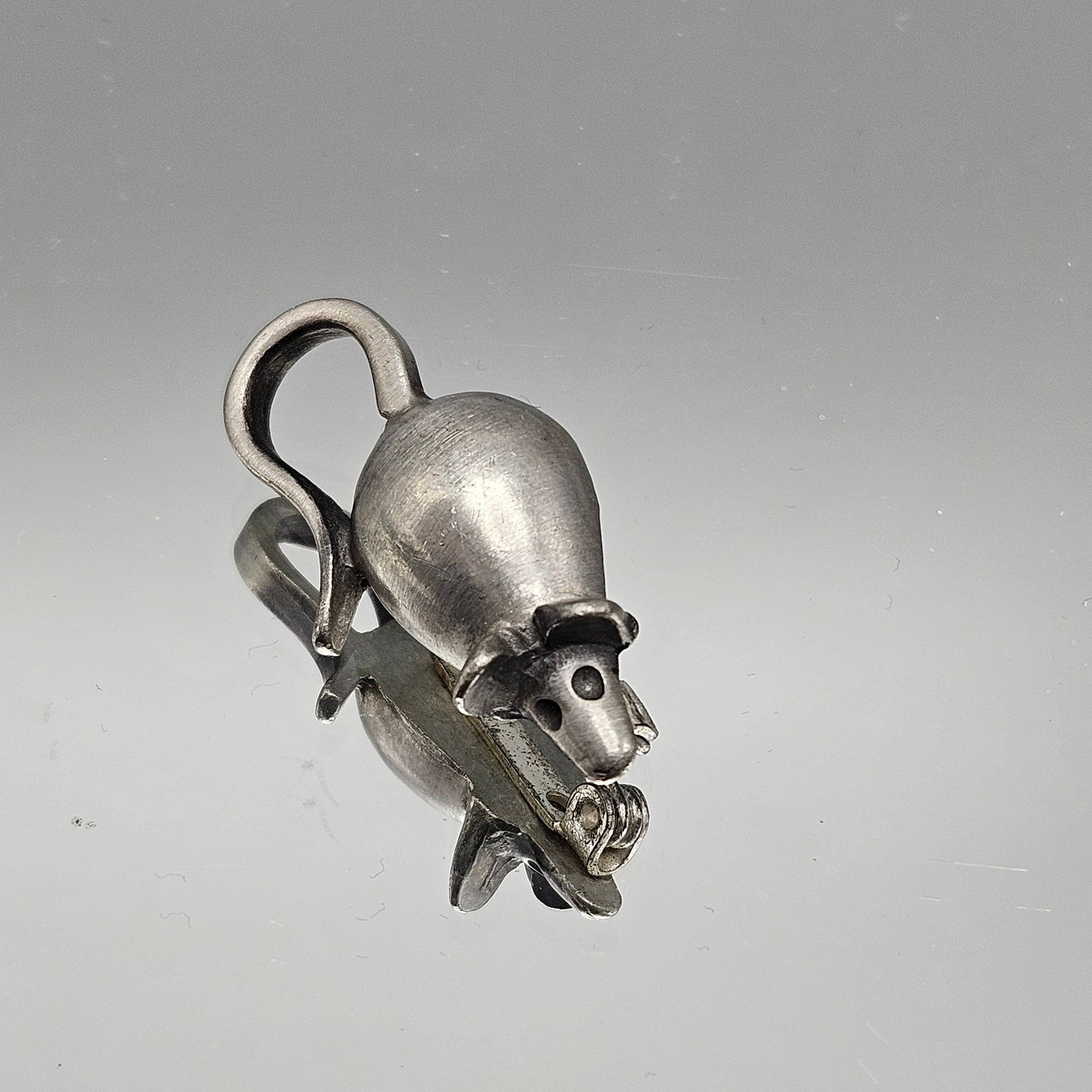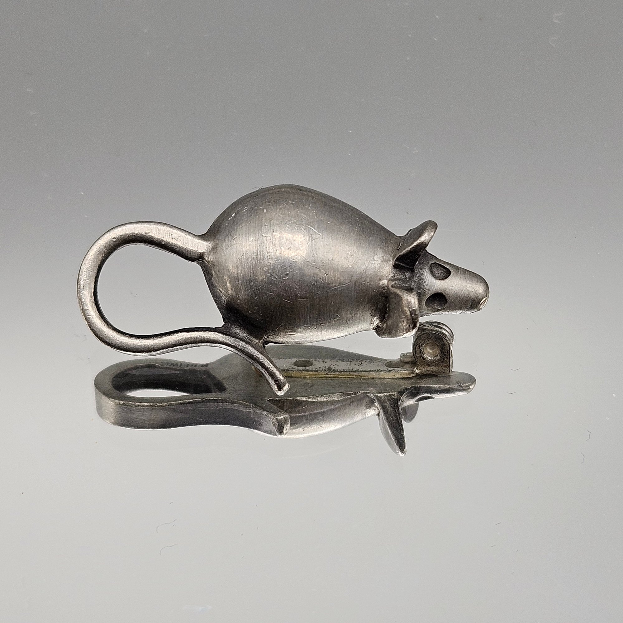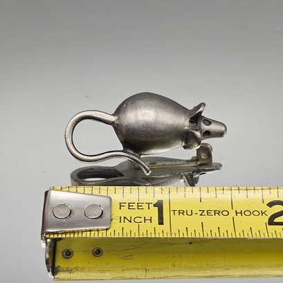 Vintage sterling silver mouse brooch marked Sweden. Cute minimalist animal design with a secure pin back, measuring approx. 1.5 inches — a charming collectible piece.