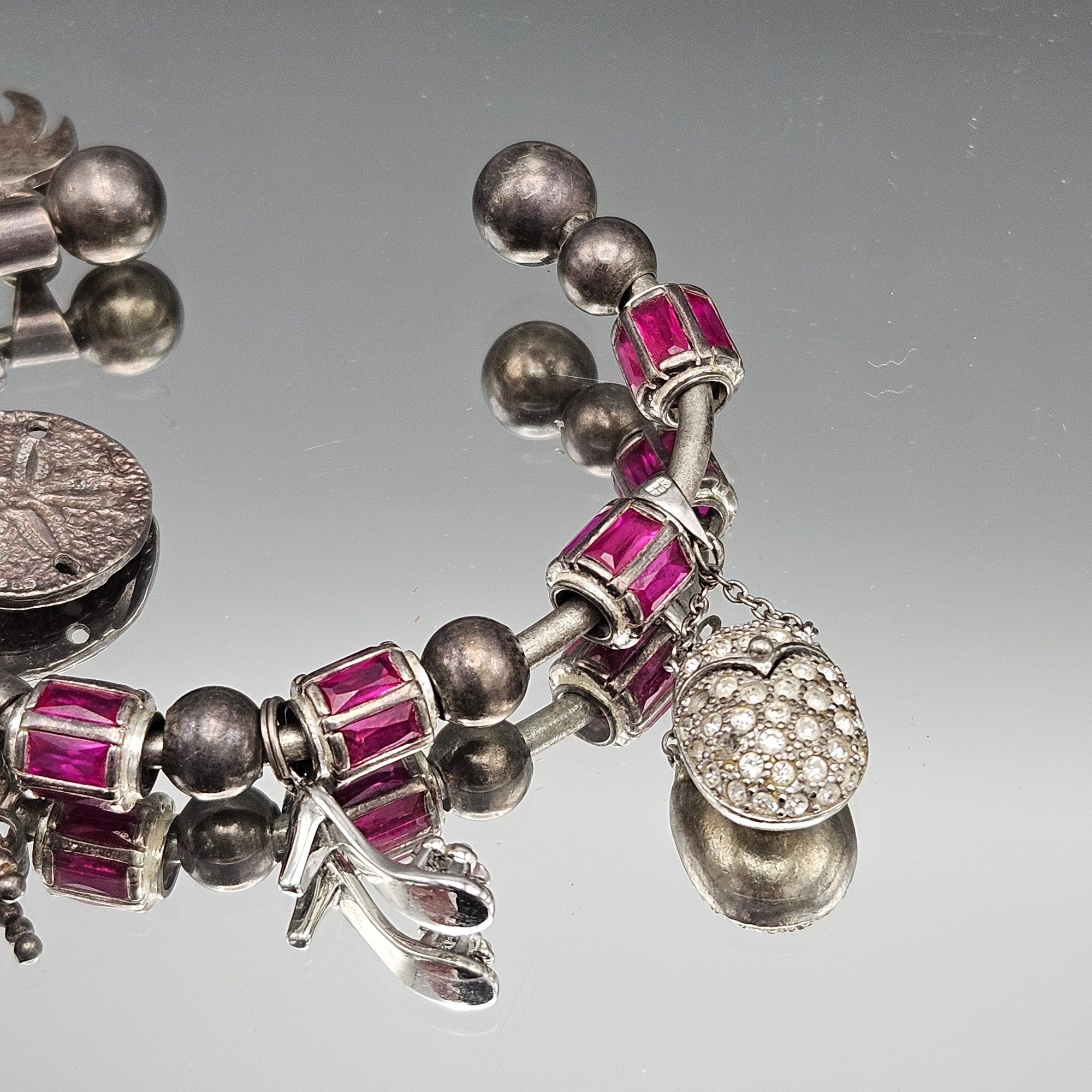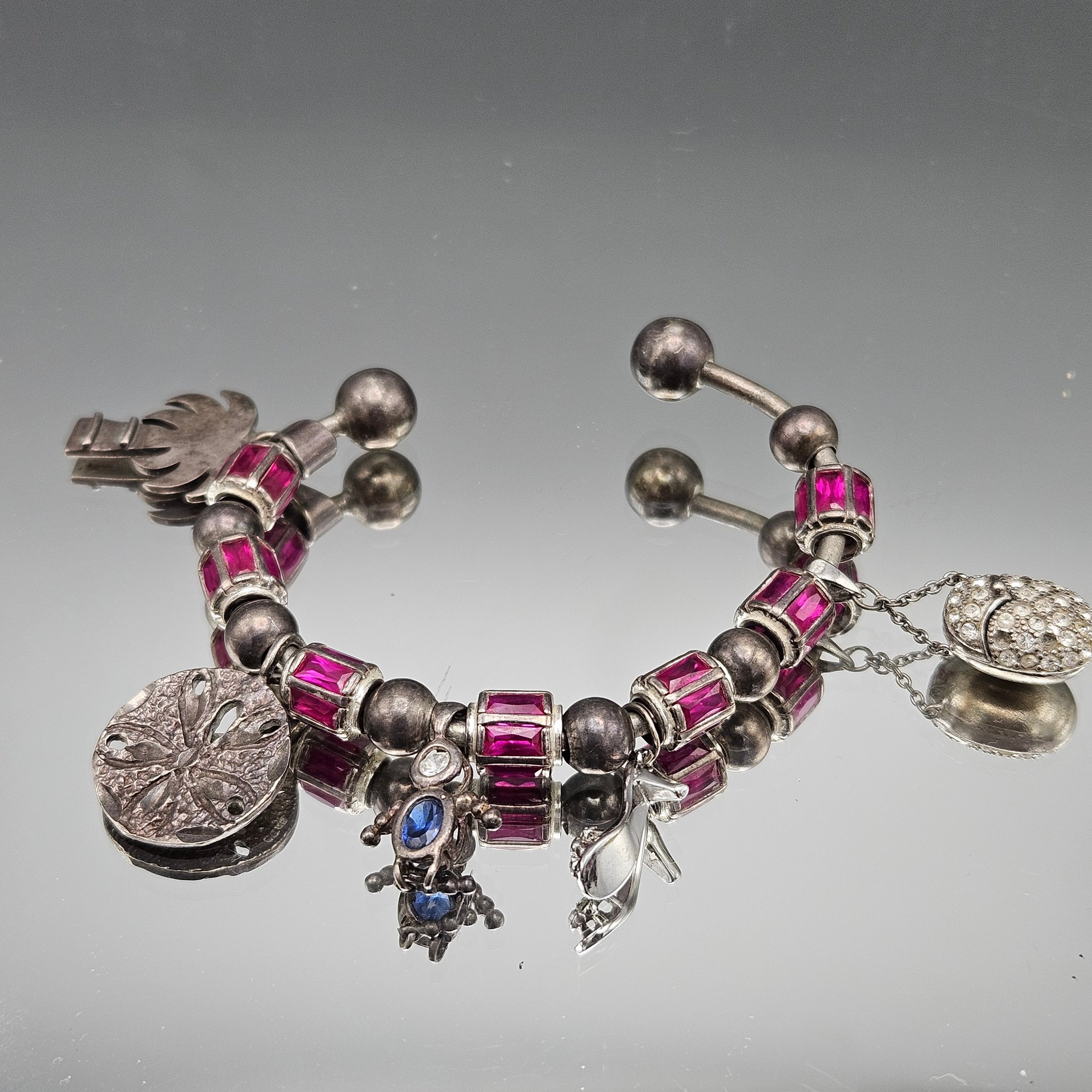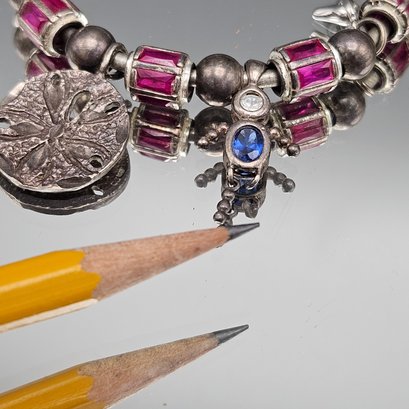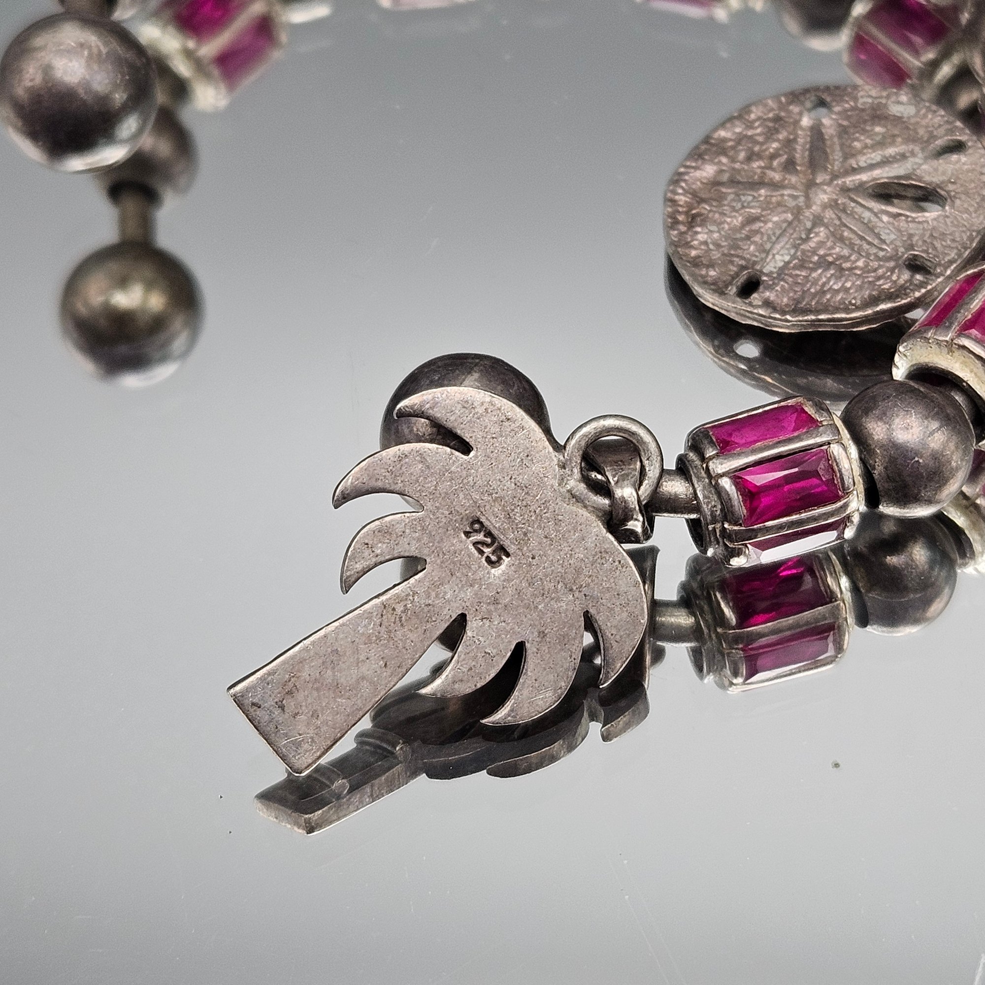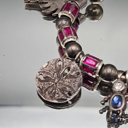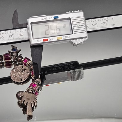 Vintage Sterling Silver Multi-Charm Gemstone Cuff Bracelet 2.56"