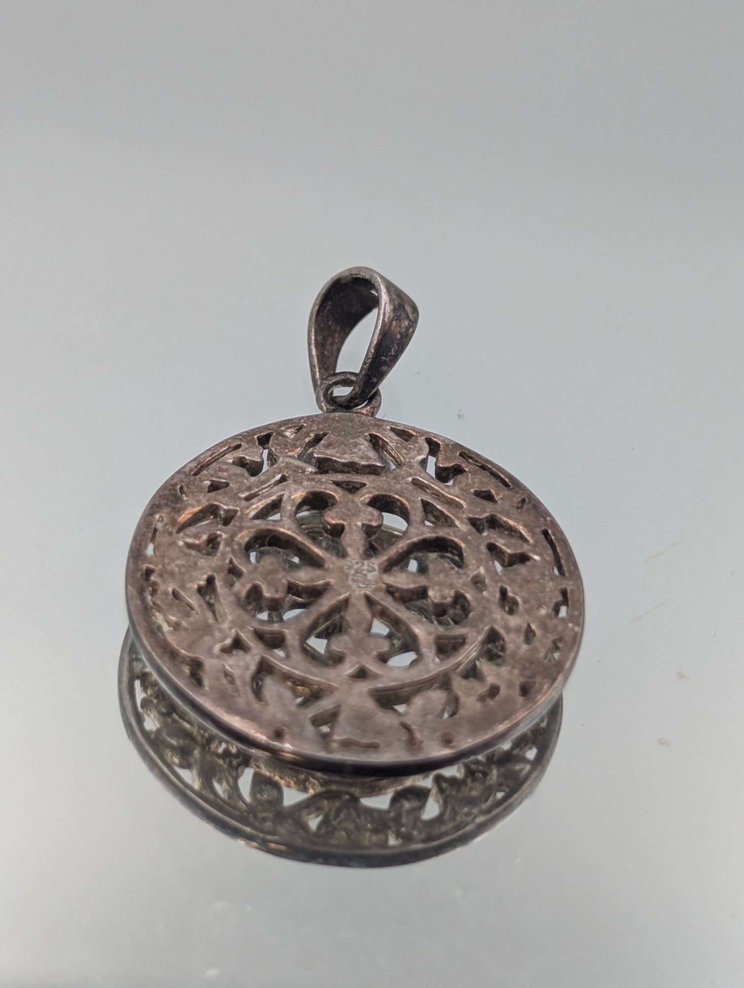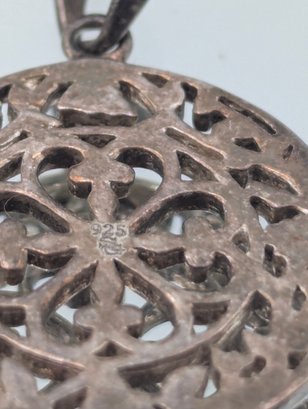 Vintage Sterling Silver Openwork Geometric Filigree Mandala Pendant - 925