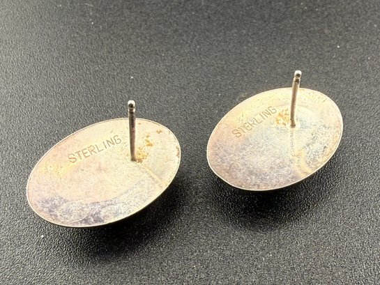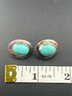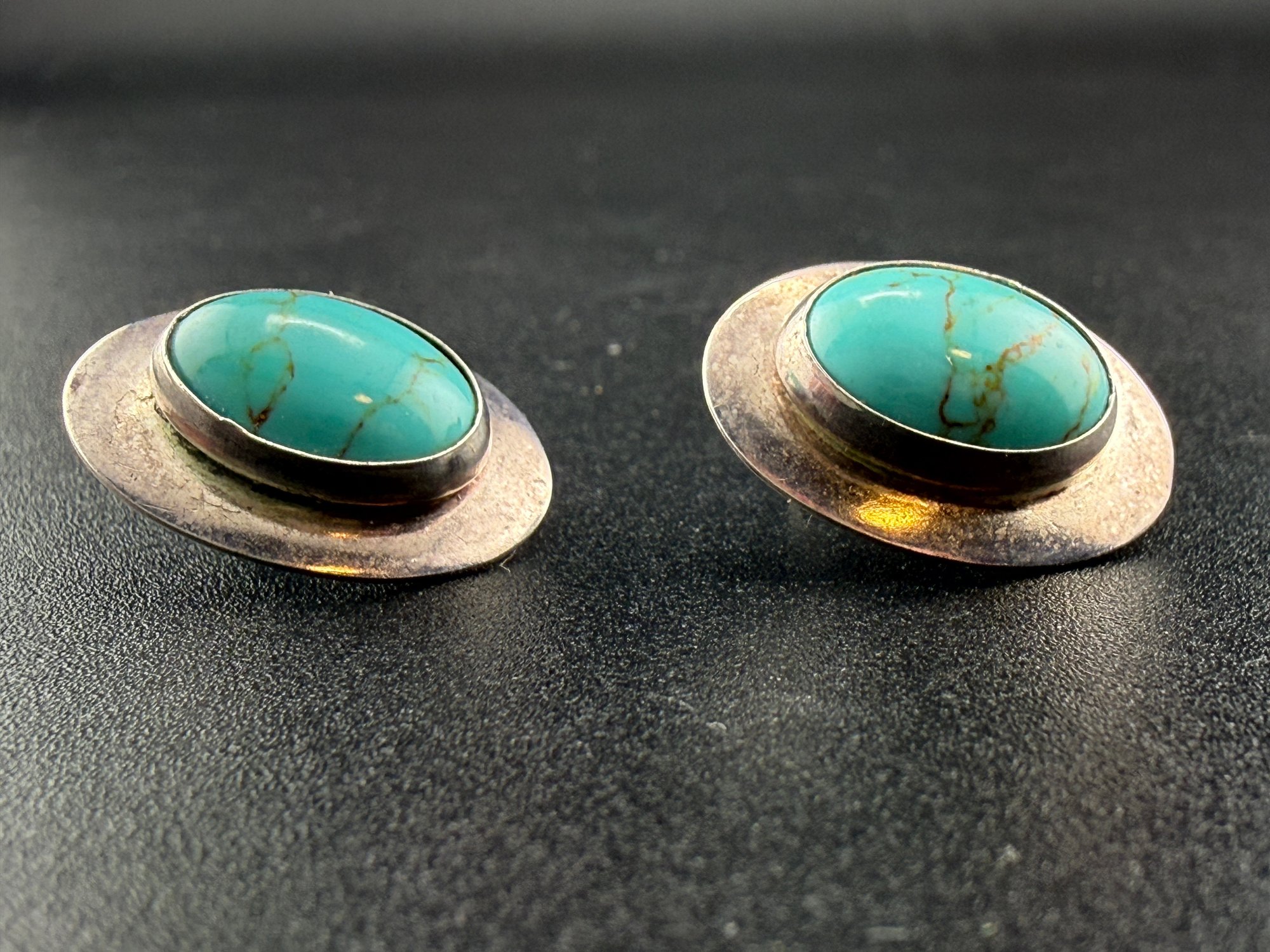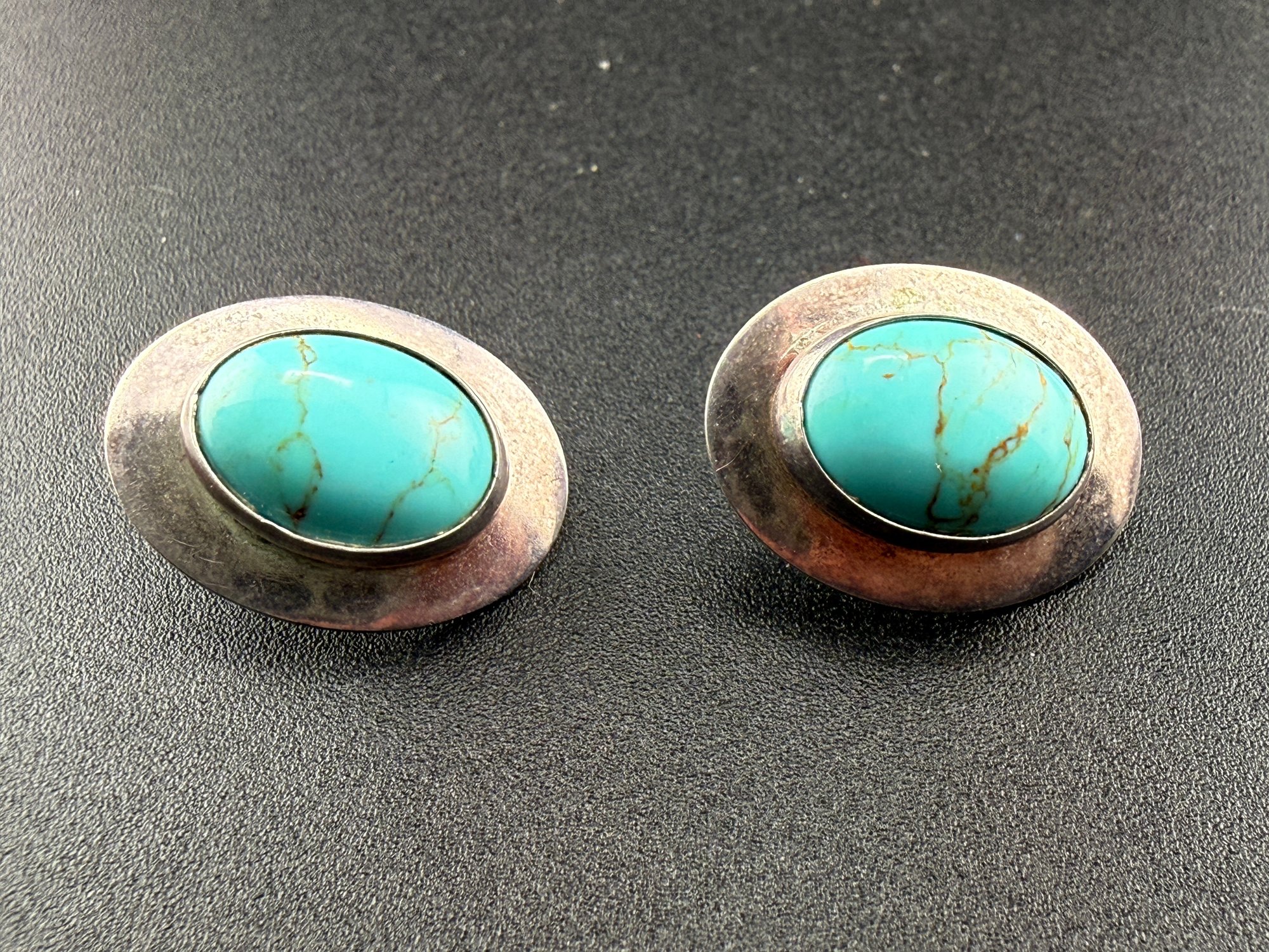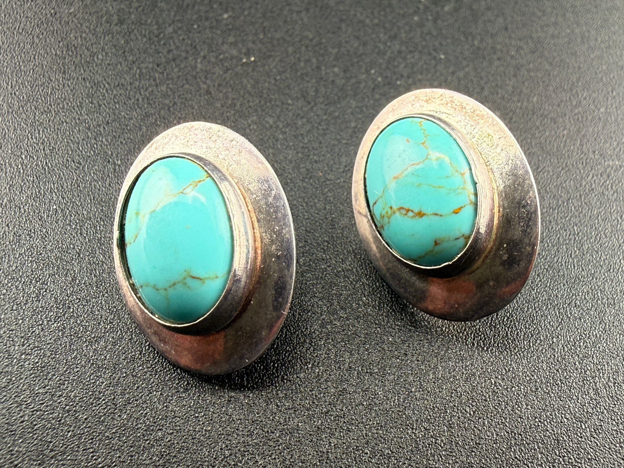 Vintage Sterling Silver Oval Turquoise Cabochon Stud Earrings with Matrix