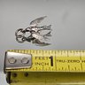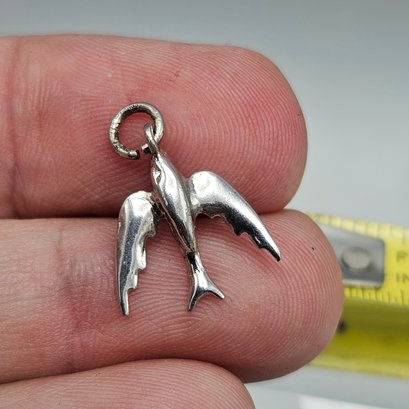Delicate sterling silver swallow charm featuring outstretched wings and fine feather detailing. A classic symbol of freedom and travel, perfect for a necklace or charm bracelet. Solid, well-crafted piece with lovely vintage character.