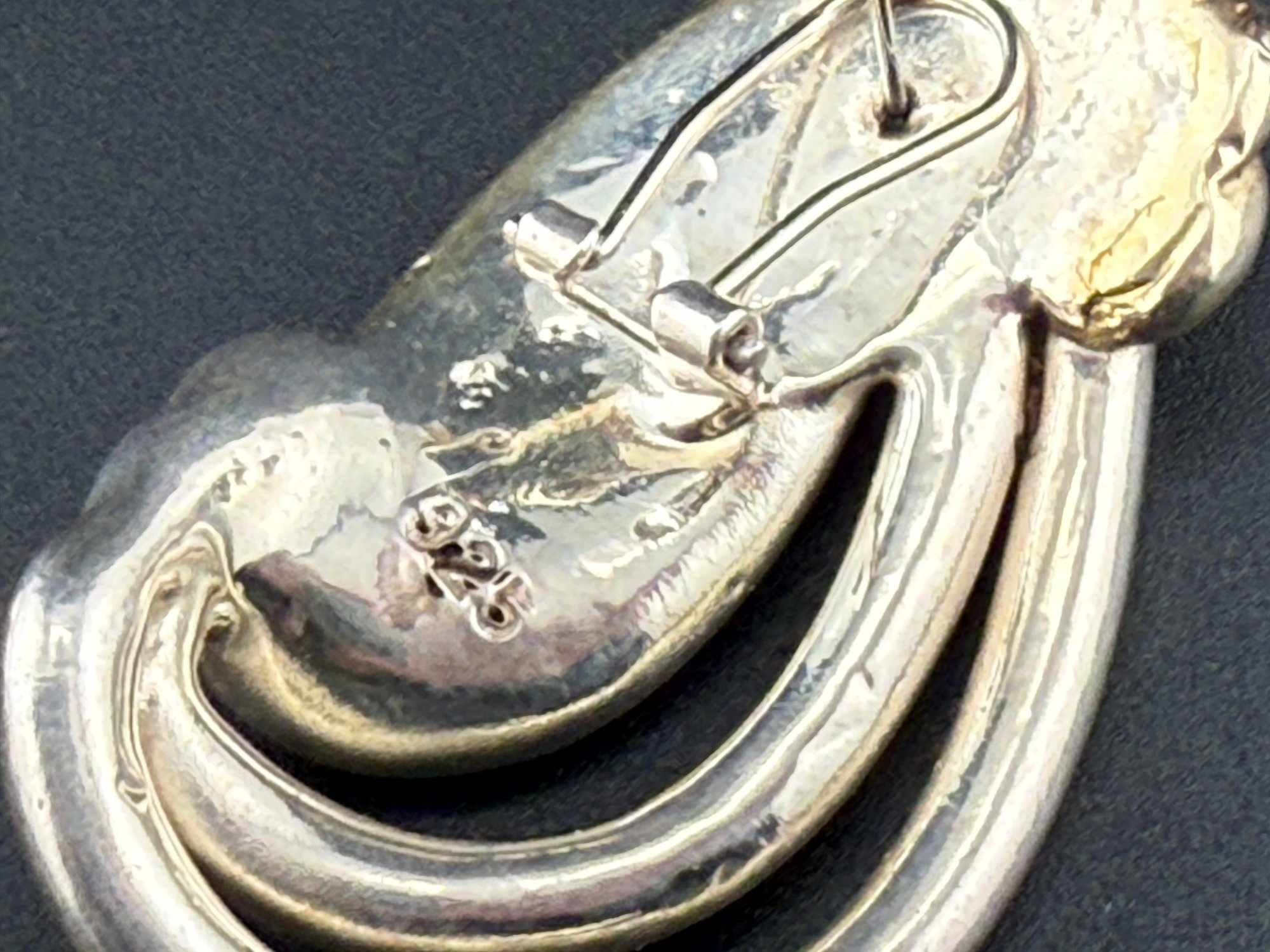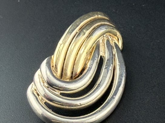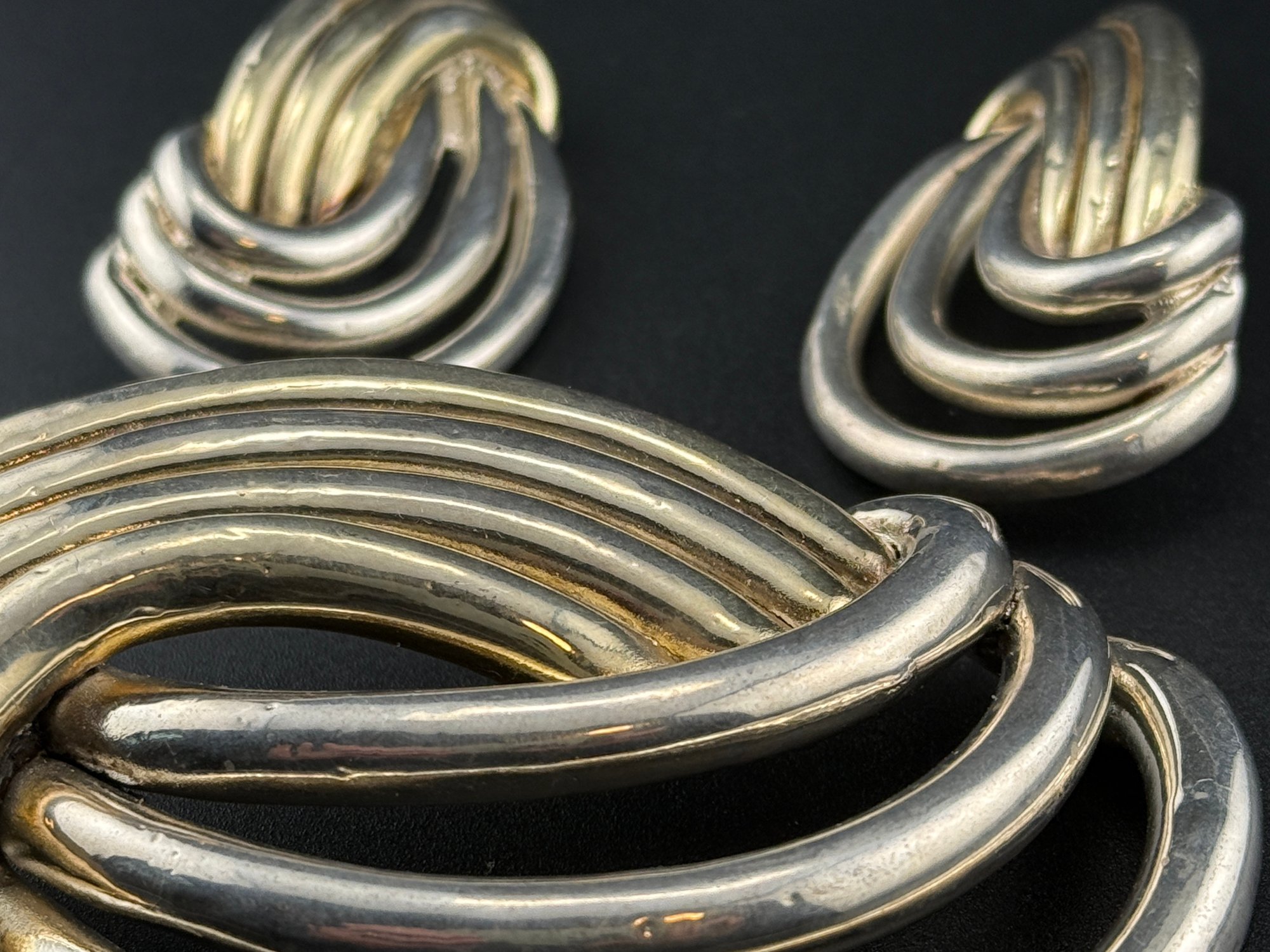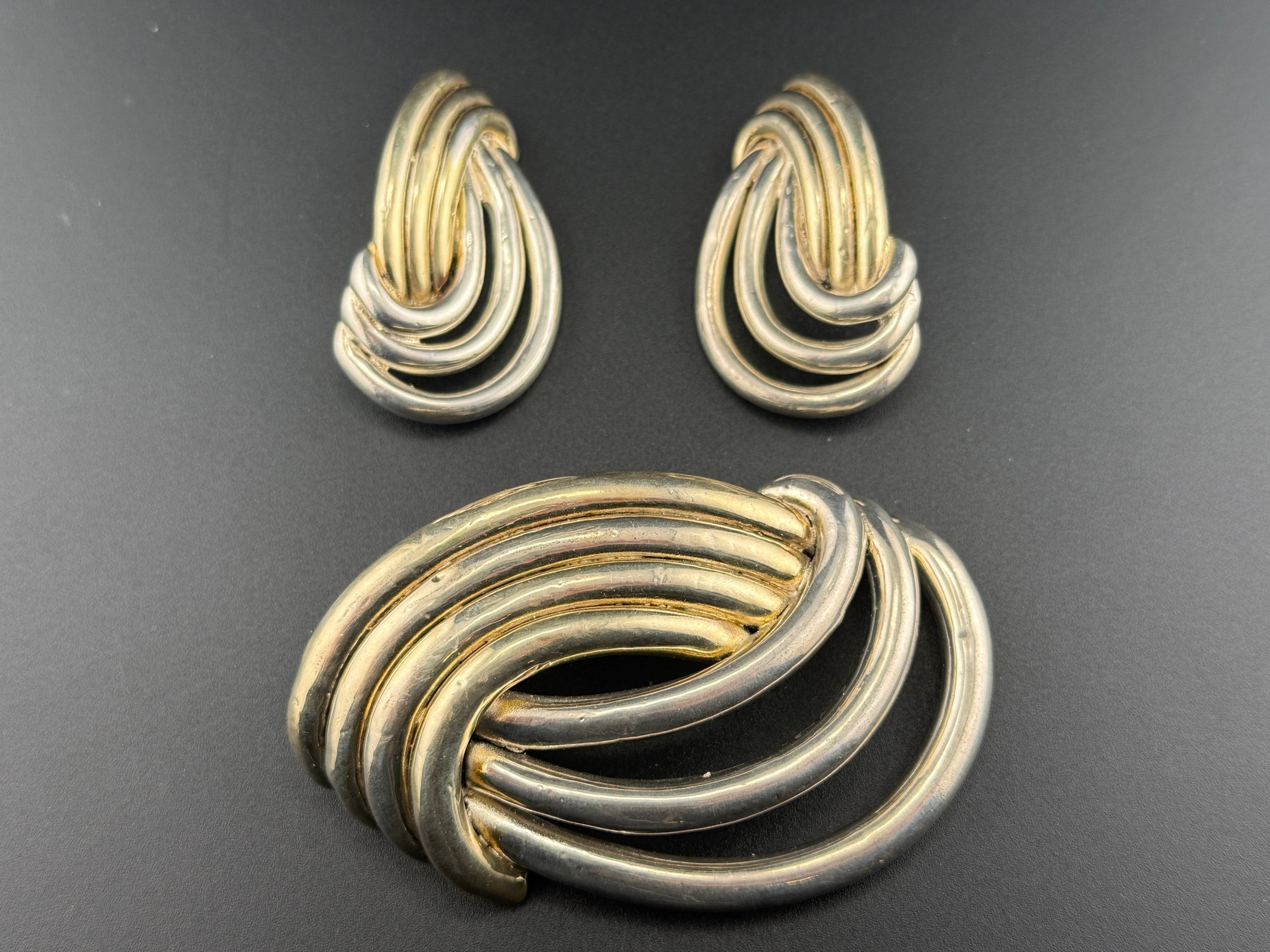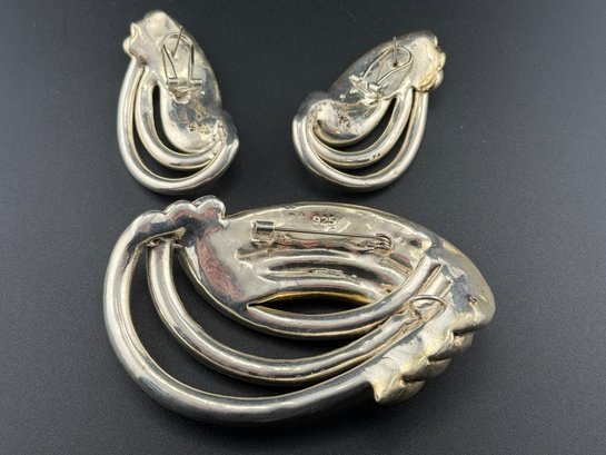 Vintage Sterling Silver Two Tone Knot Brooch & Earrings Set Mid Century Modern 925