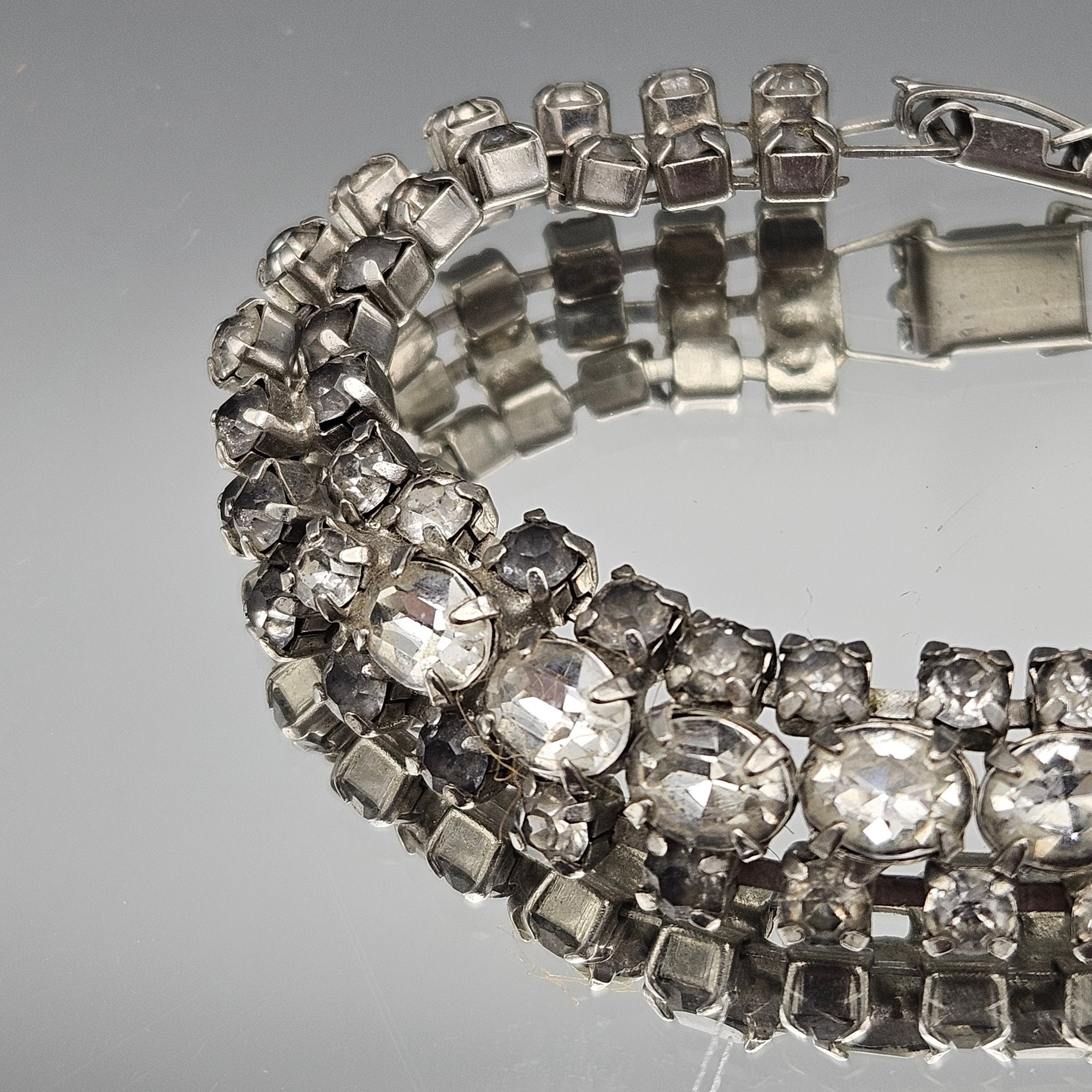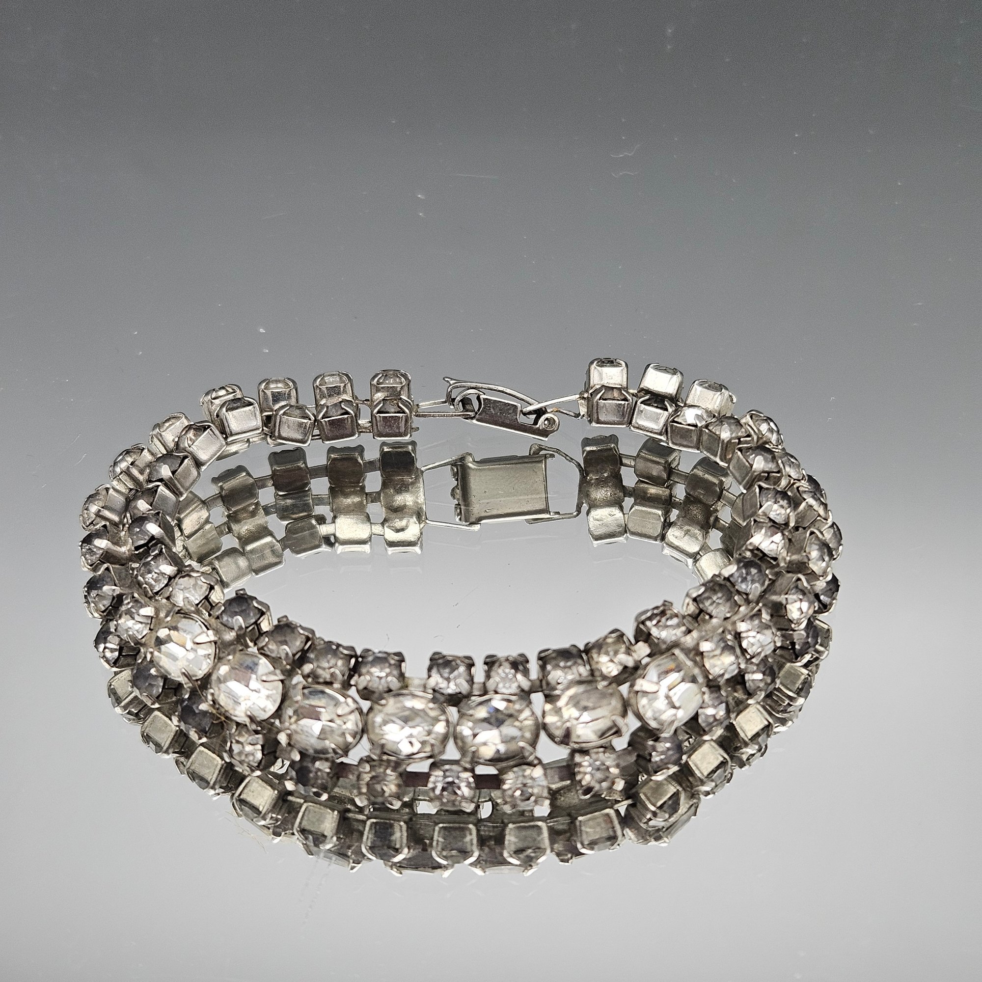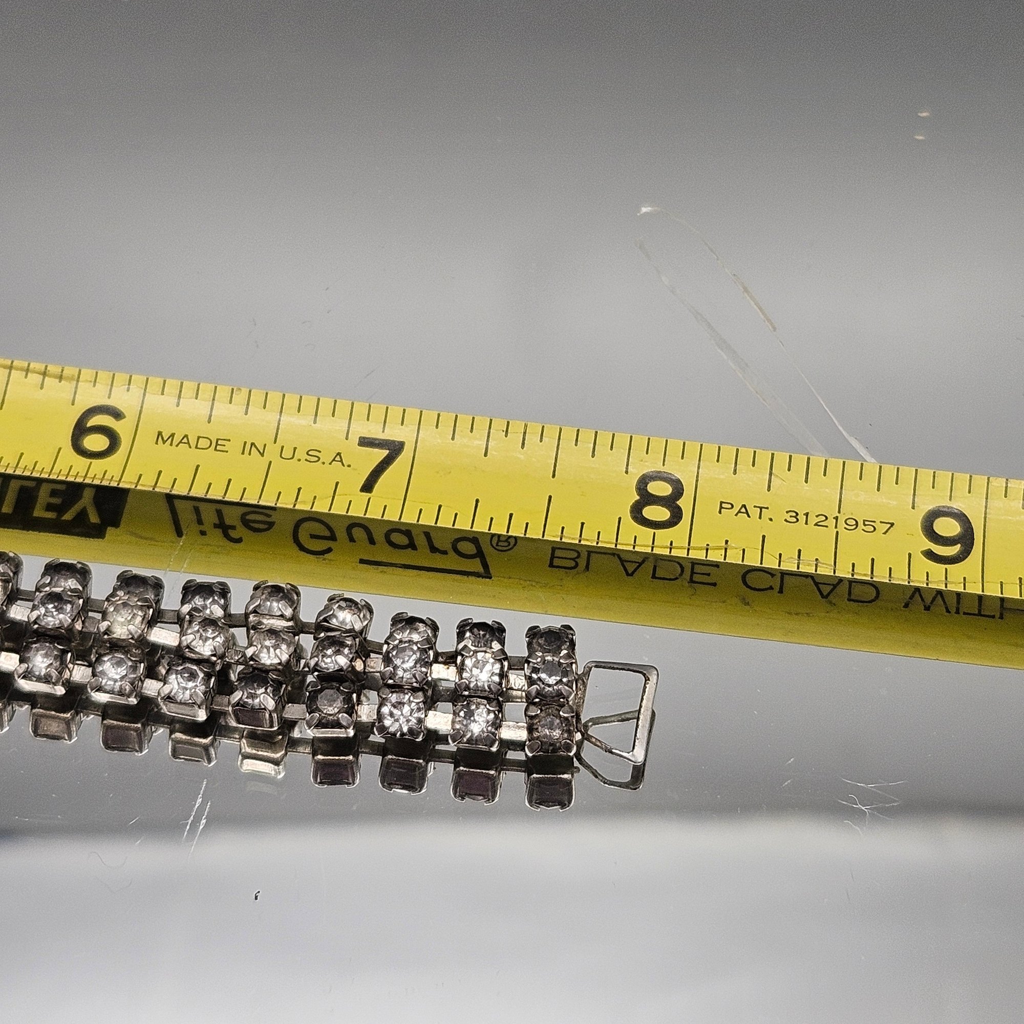 Vintage Triple-Row Rhinestone Bracelet -7"