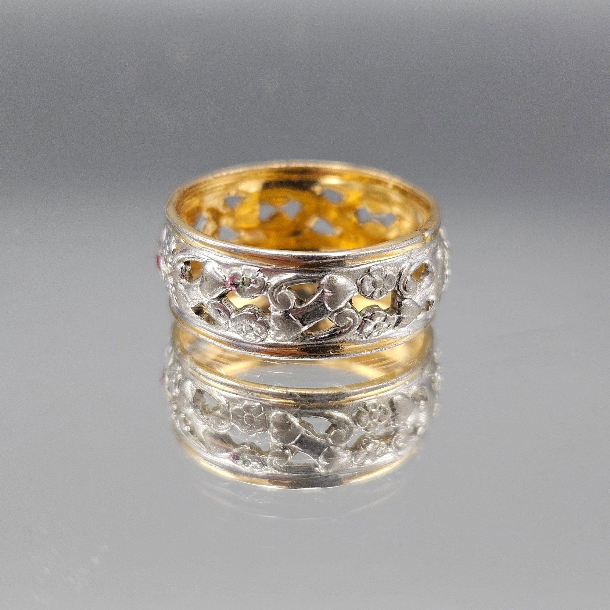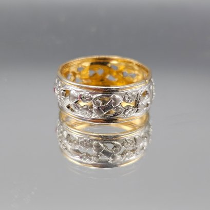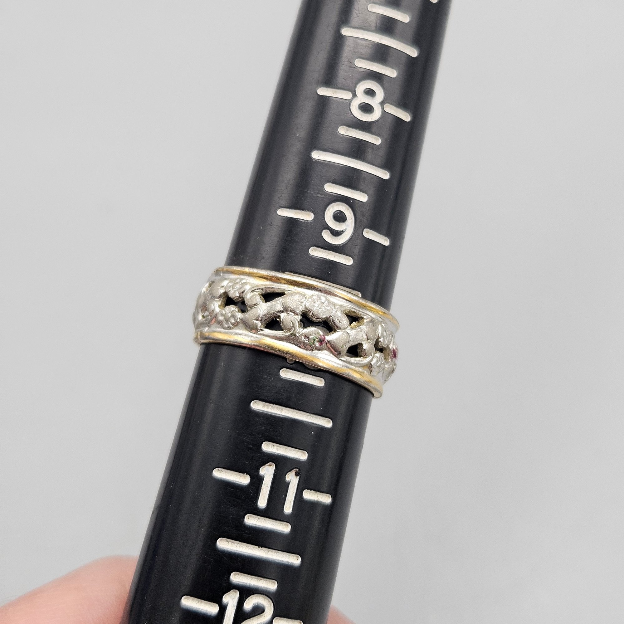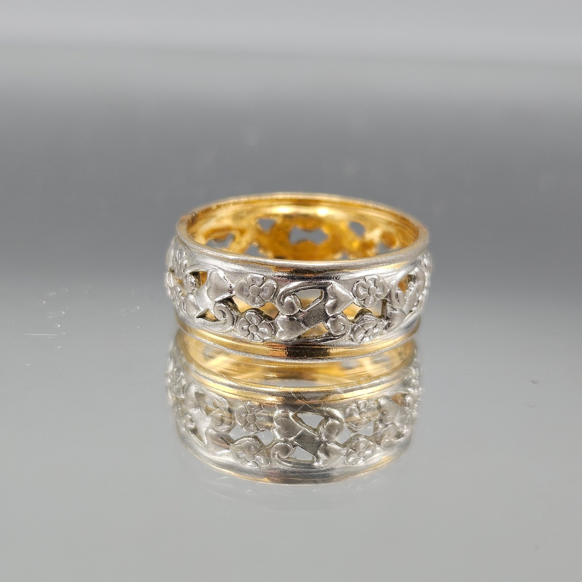 Vintage Two-Tone Filigree Floral Band Ring - Size 10