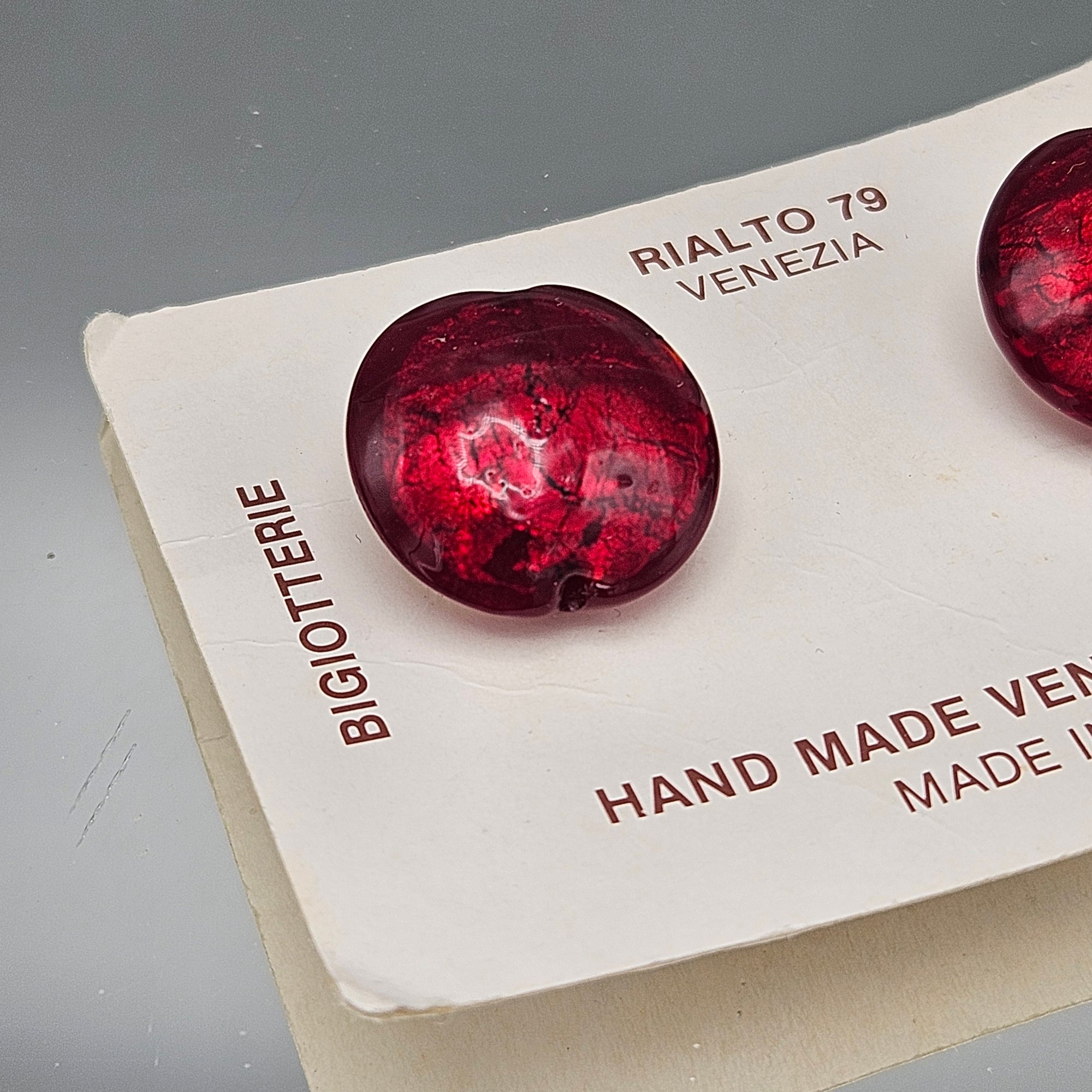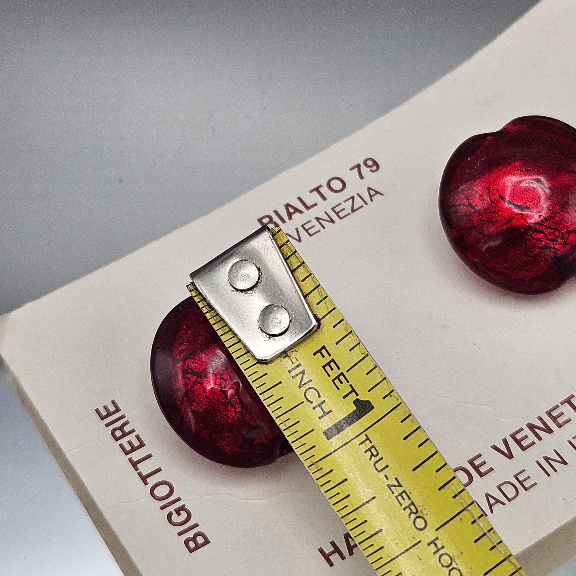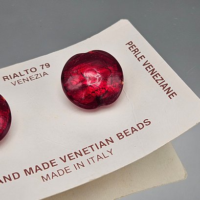 Vintage Venetian Glass Ruby Red Foil Clip-On Earrings Made in Italy