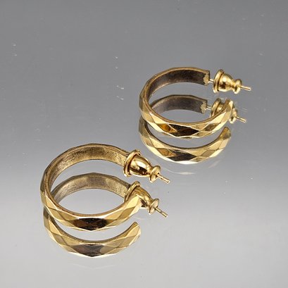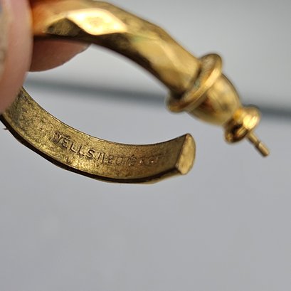 Vintage Wells Gold Filled Faceted Hoop Earrings