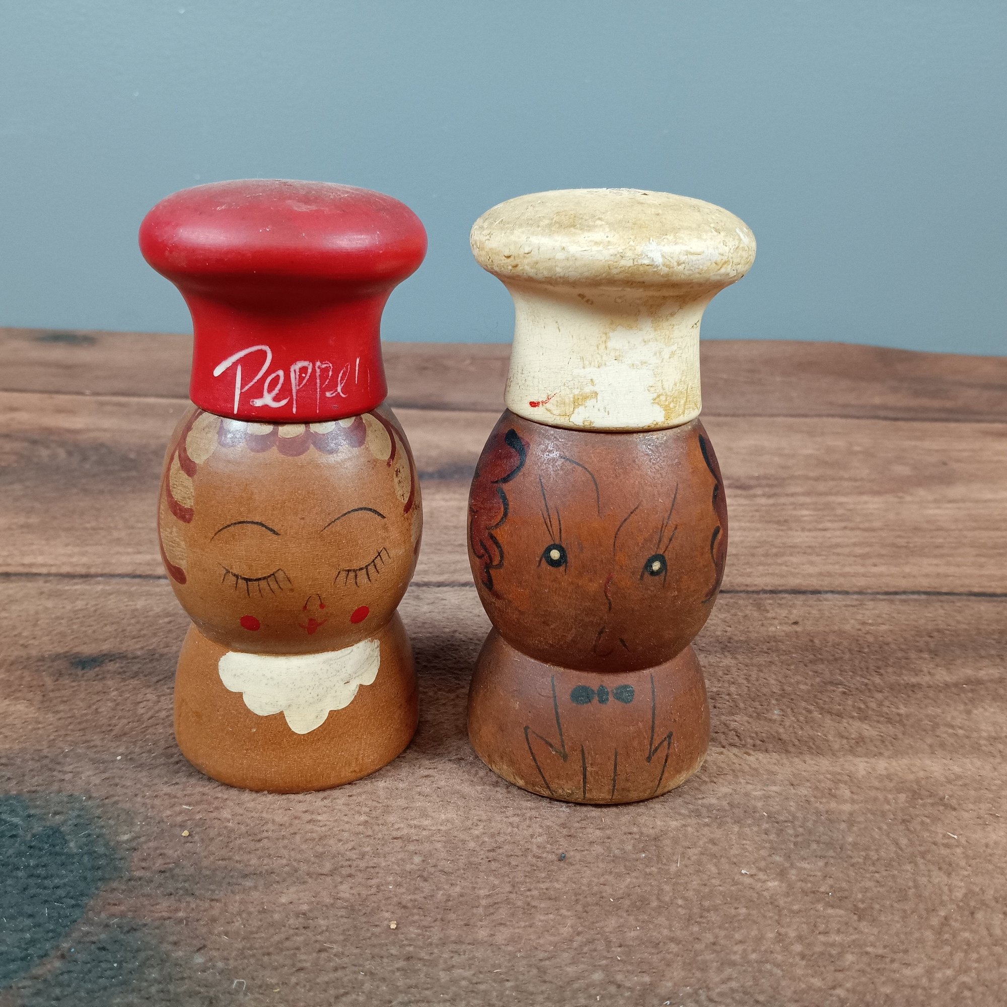 vintage wooden Mr. and Mrs. Chef salt and pepper shaker set