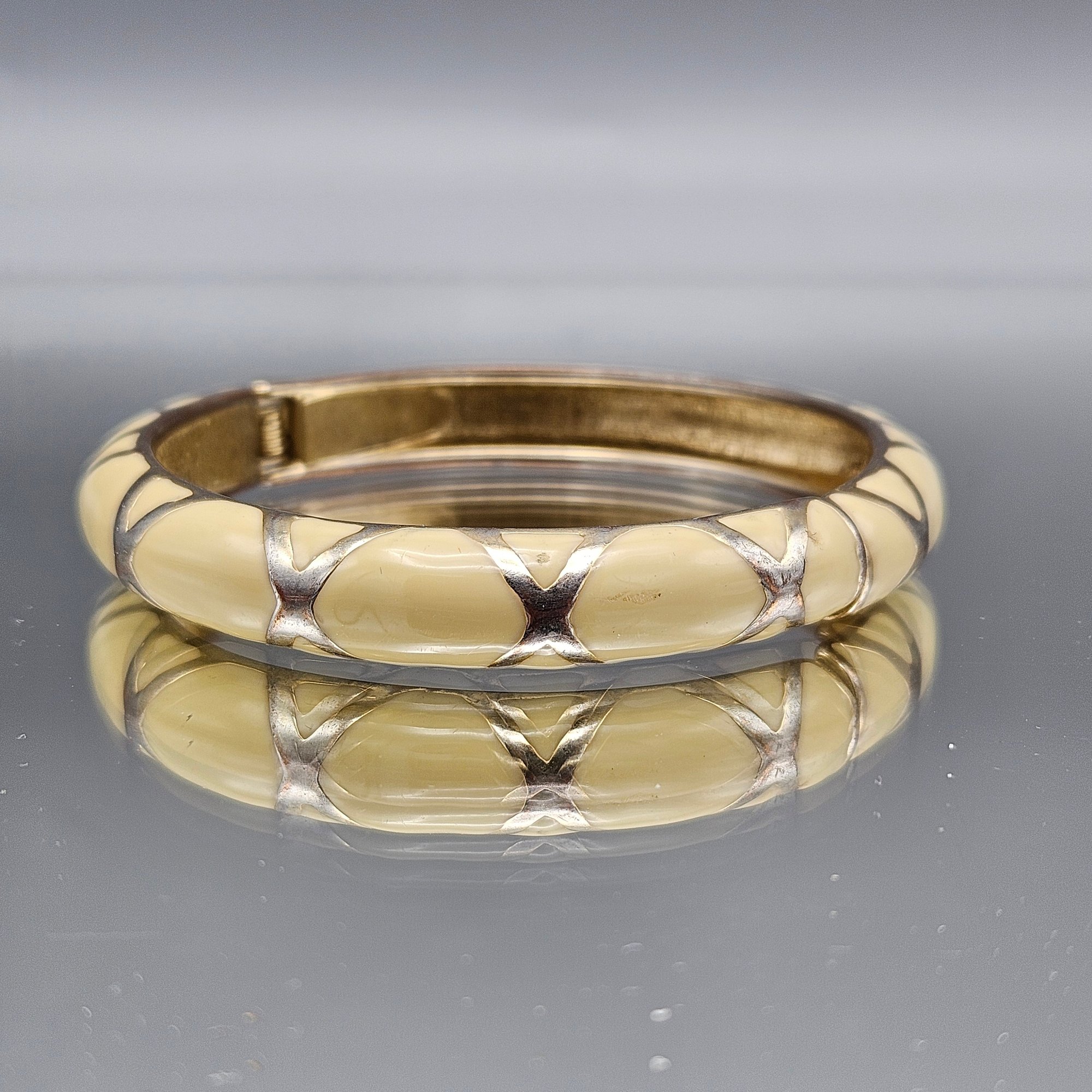 White and silver tone hinged Bangel Bracelet