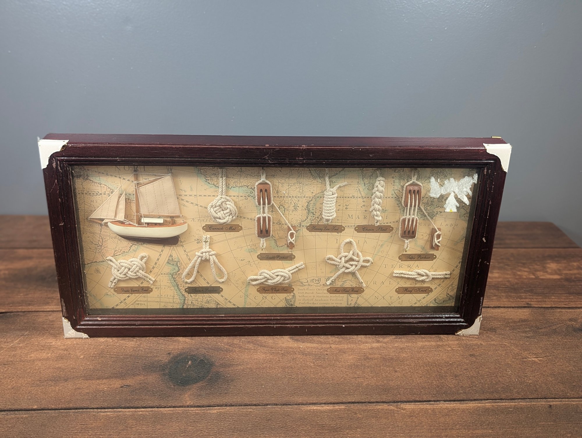 Wooden Knot 3D Board Nautical Wall Display w/ Glass and Wooden Frame