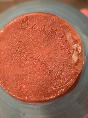 Bermuda Pottery Handmade Blue Green Drip Glaze Stoneware Vase