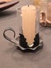 Black Metal Candle Holder Glass Hurricane Leaf Detail Scroll Handle Pillar Candle