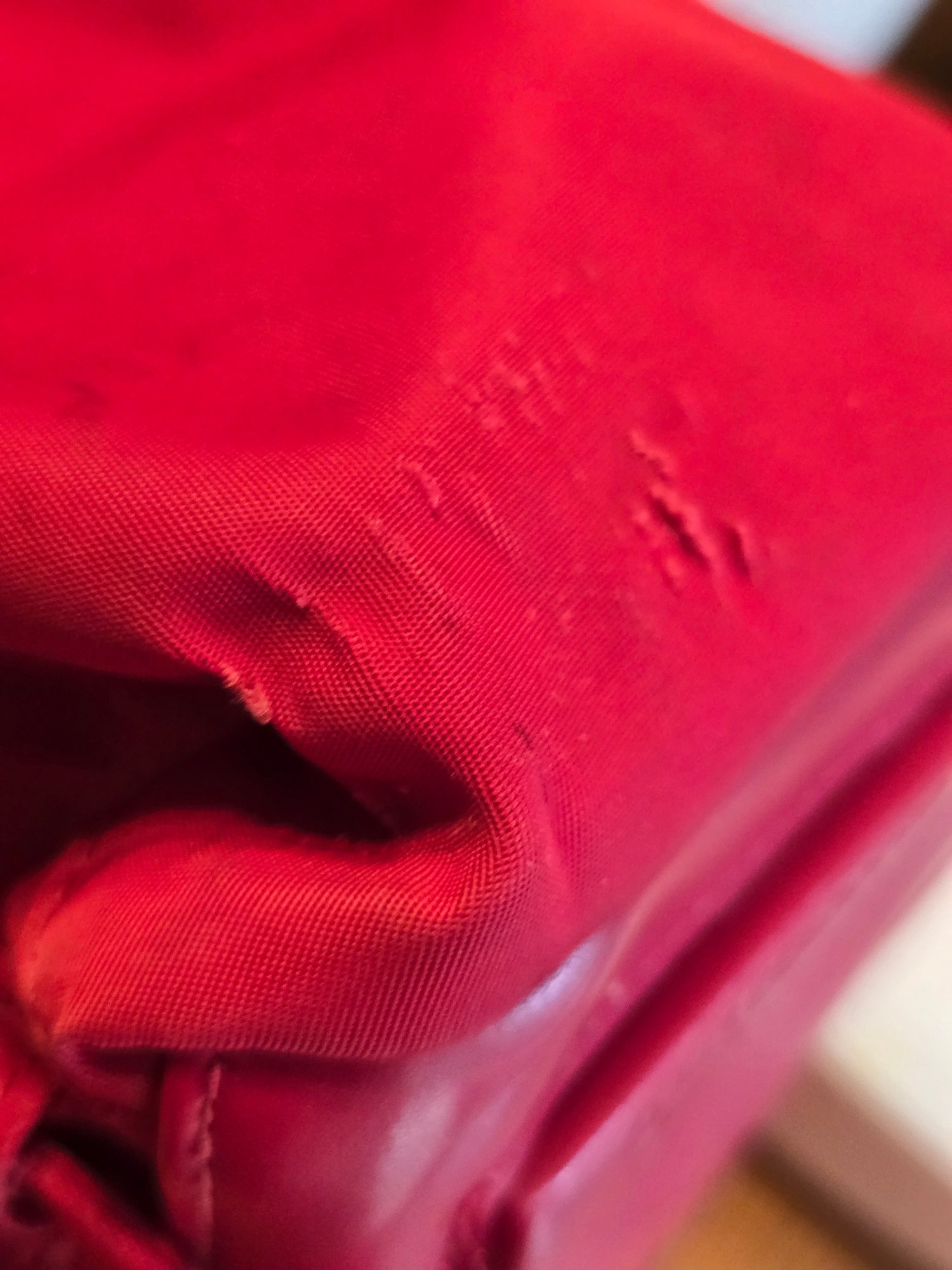 AS-IS. Surface tears in nylon fabric as shown in photos. Hardware plate scratched. Sold as found.