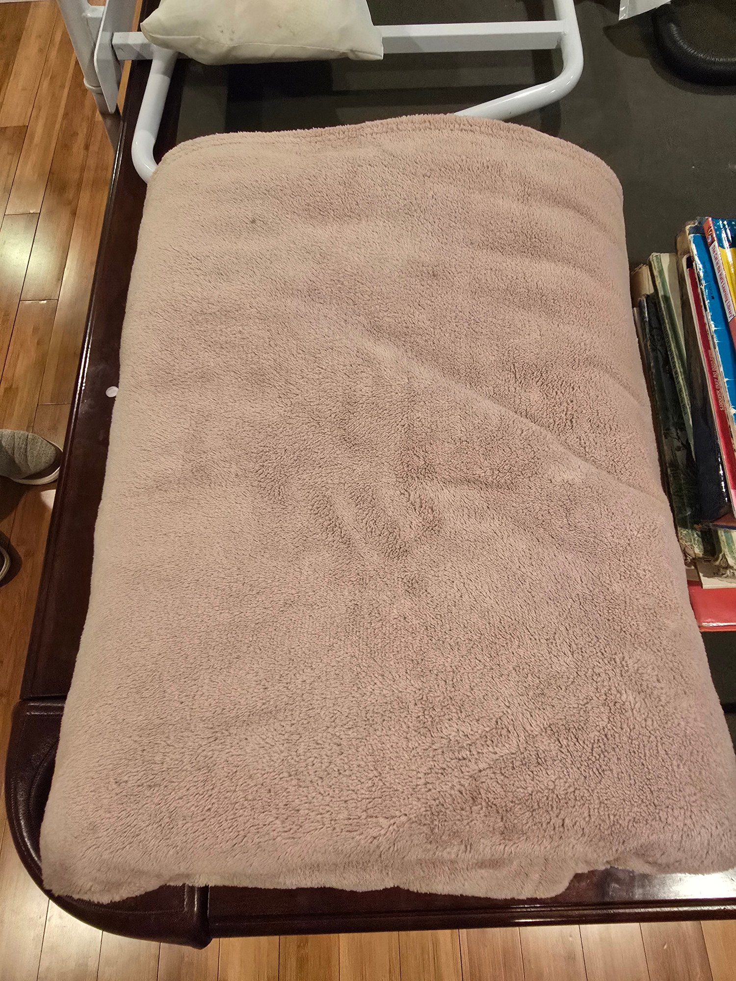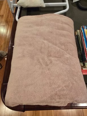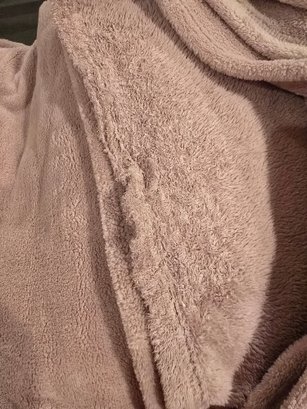 Notes: Large queen-size plush fleece blanket in warm taupe/tan. Super soft and cozy — great for bed, couch, or guest room.