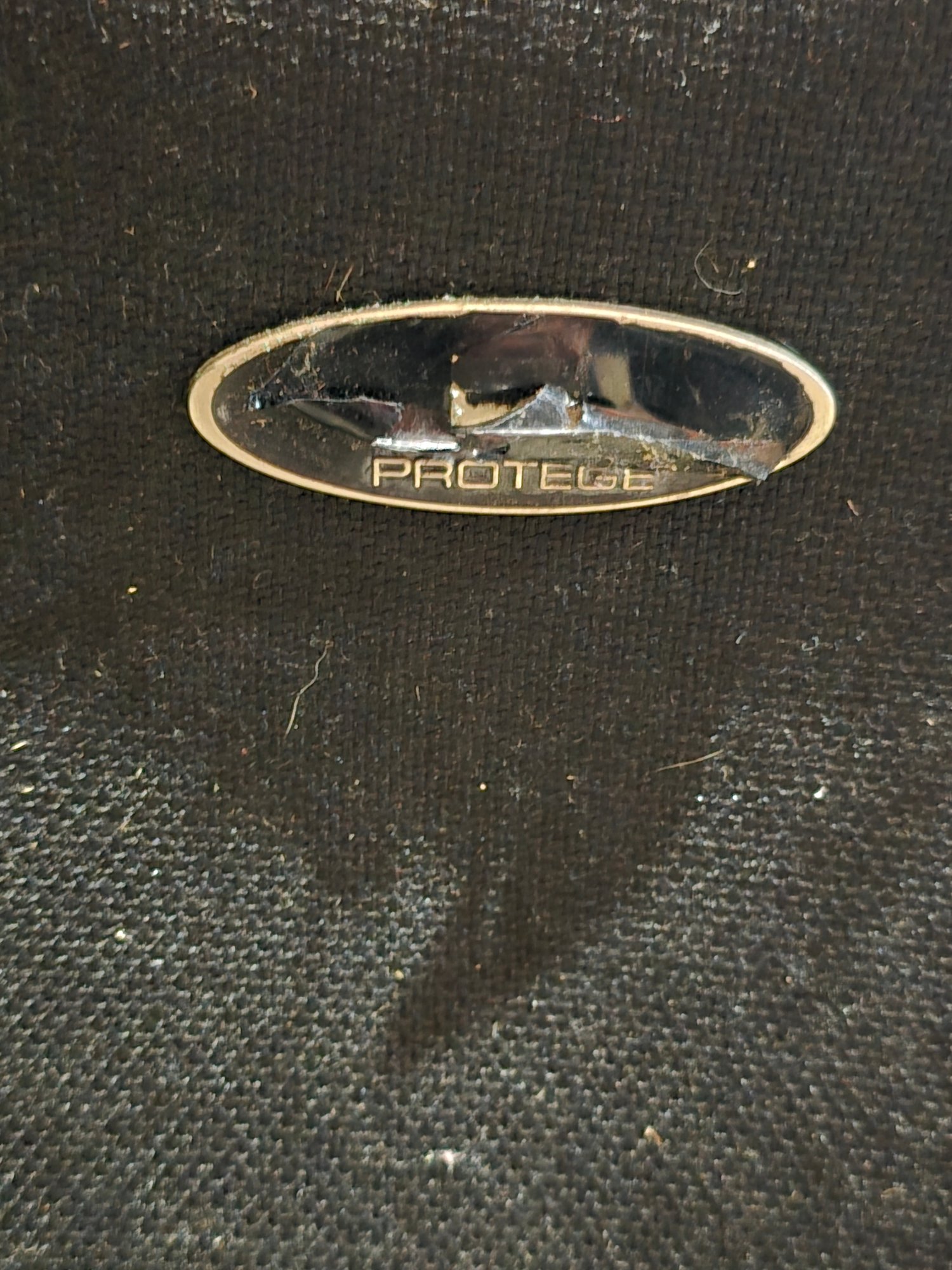 Notes: Protege brand black softside rolling carry-on suitcase with front zipper pockets, top handle, and wheels.