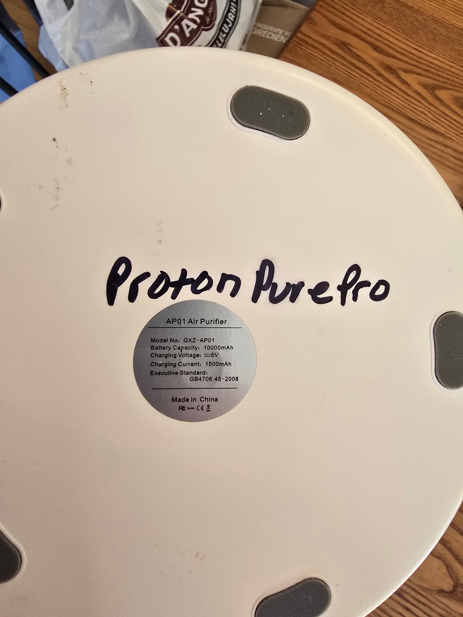 Lot of 2 Proton Pure Pro AP01 portable air purifiers. Battery powered, 10000mAh, USB rechargeable (one charger included). Carry handle, top exhaust fan. Both power on and function. Filters may need replacement. As is.