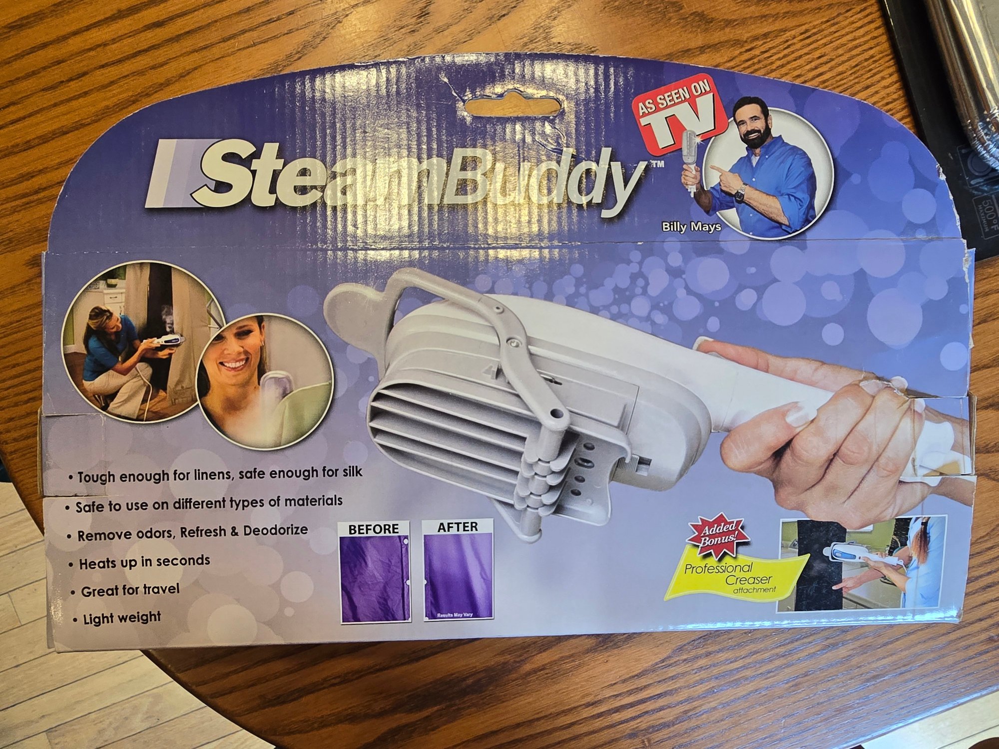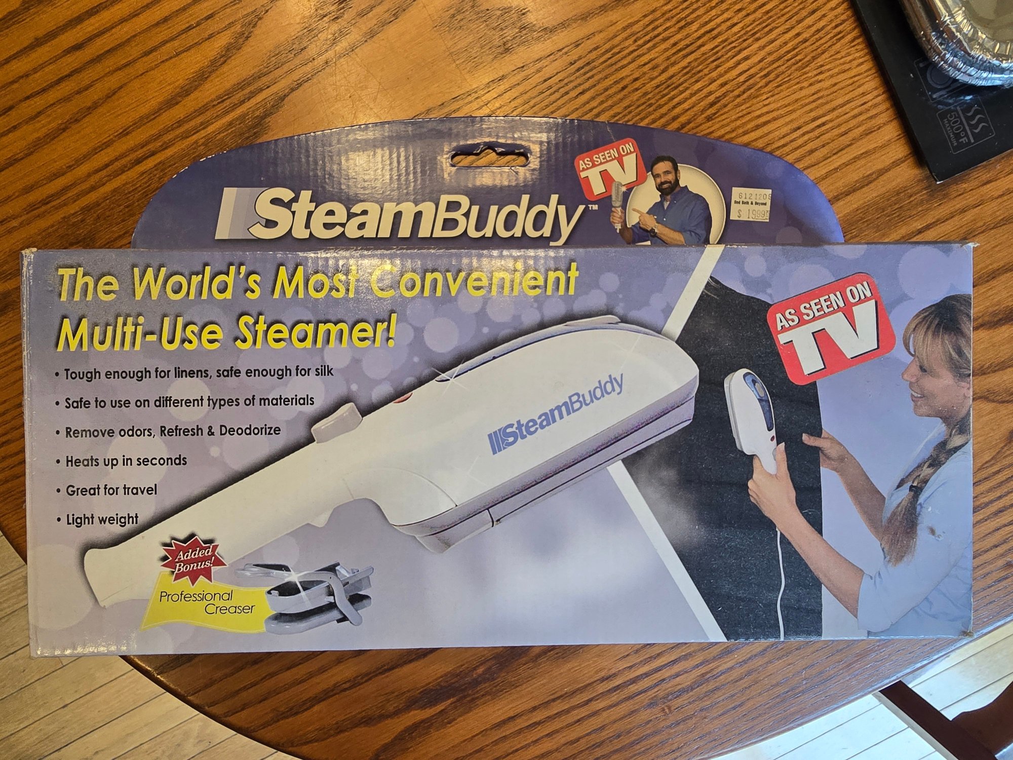 SteamBuddy handheld fabric steamer, As Seen on TV. Includes professional creaser attachment. Original box, never used.