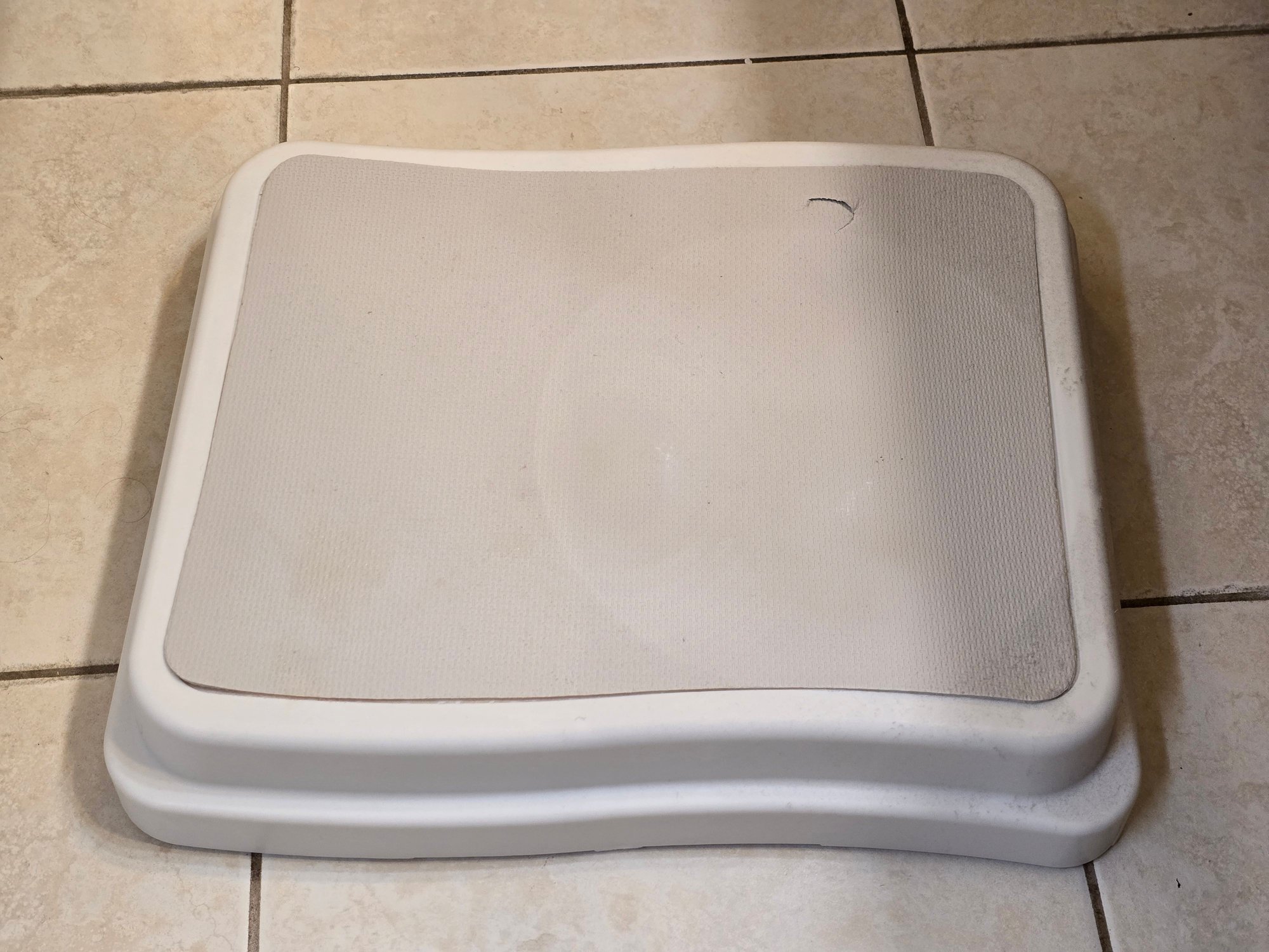 Not sure exactly what this is! Homeowner also does not remember. Looks like some sort of tough plastic platform. Foam covered top.